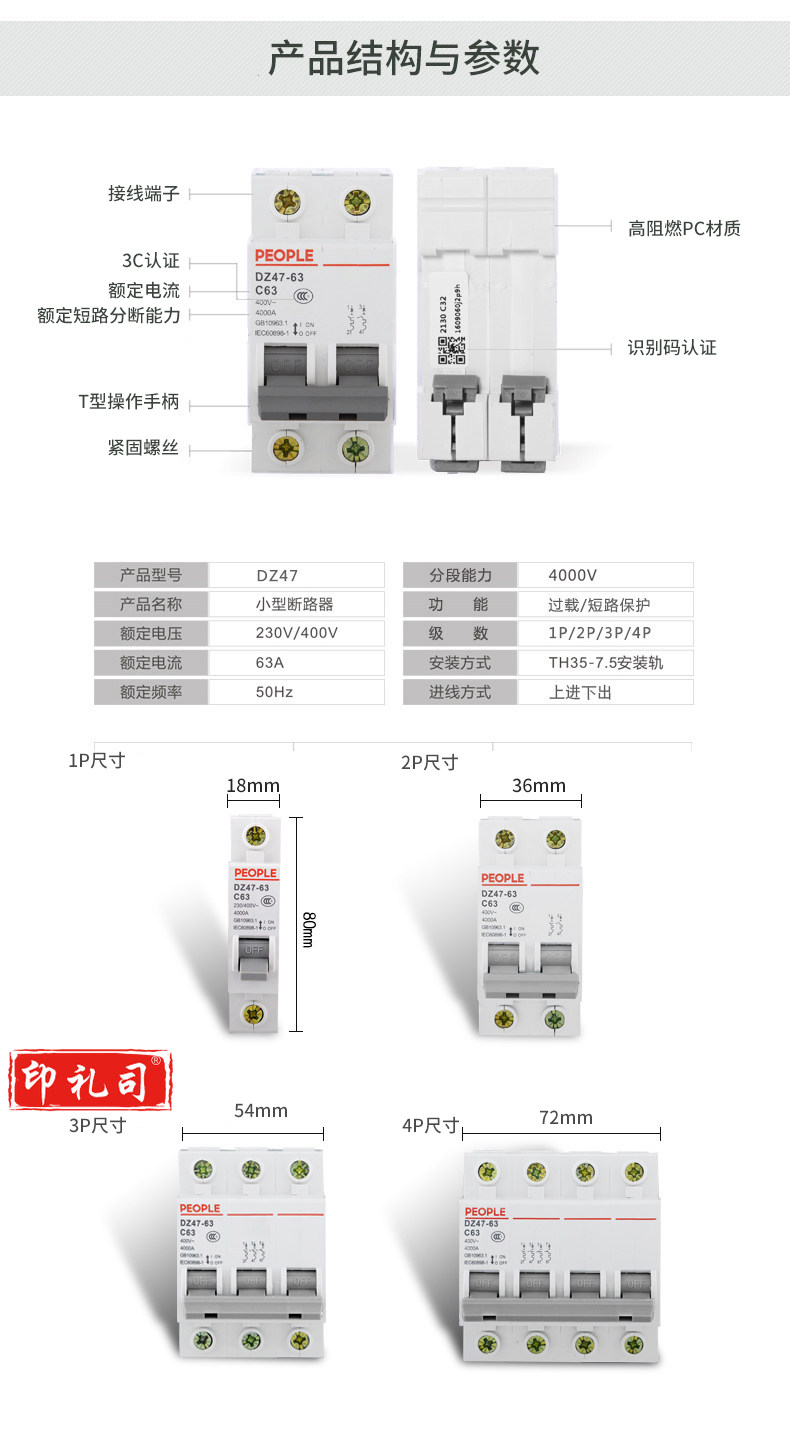 人民电器 DZ47-60 50A/1P 断路器 空气开关