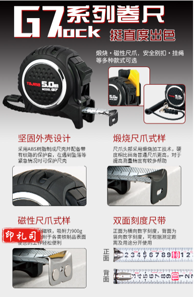 TAJIMA田岛卷尺包胶卷尺树脂套防滑抗冲击钢卷尺高精度加厚双面刻度尺带耐磨装修盒尺 1001-1671