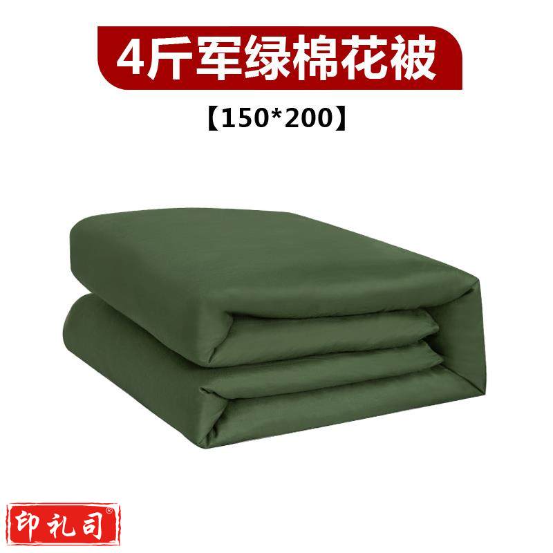 三五八五 学生军训棉被子单人宿舍军绿棉花褥子 4斤军绿棉花被 150*200