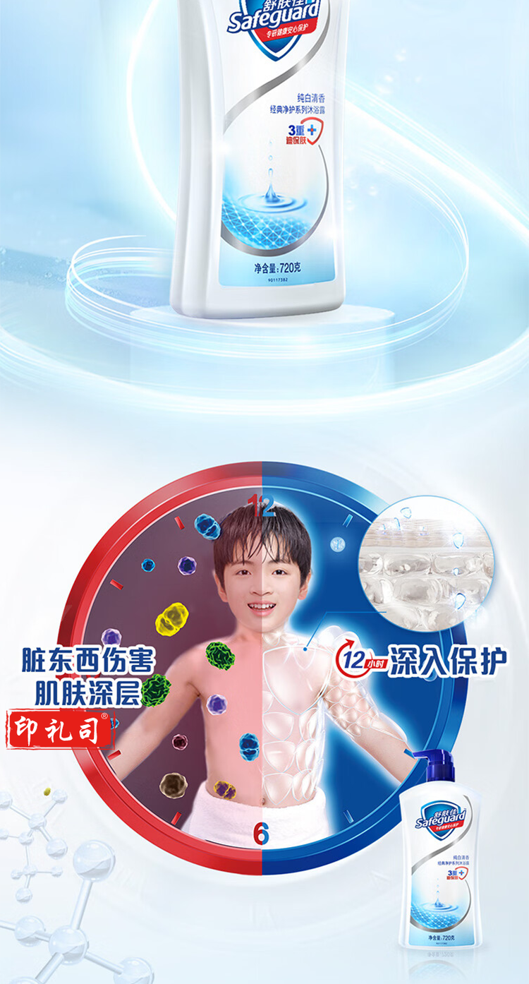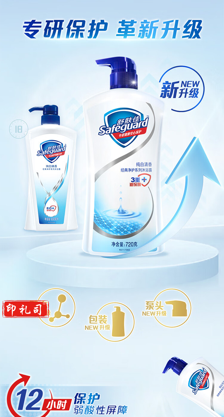 舒肤佳沐浴露清香型健康清洁留香味持久温和洁净长效护肤清爽沐浴乳通用 纯白清香720g