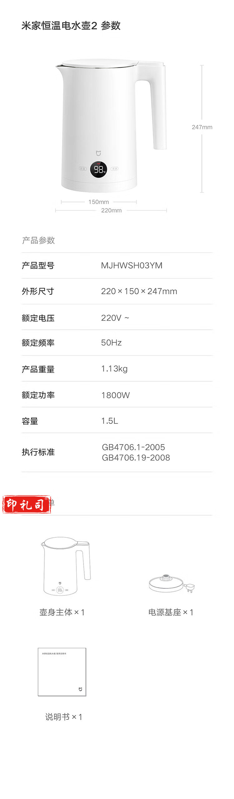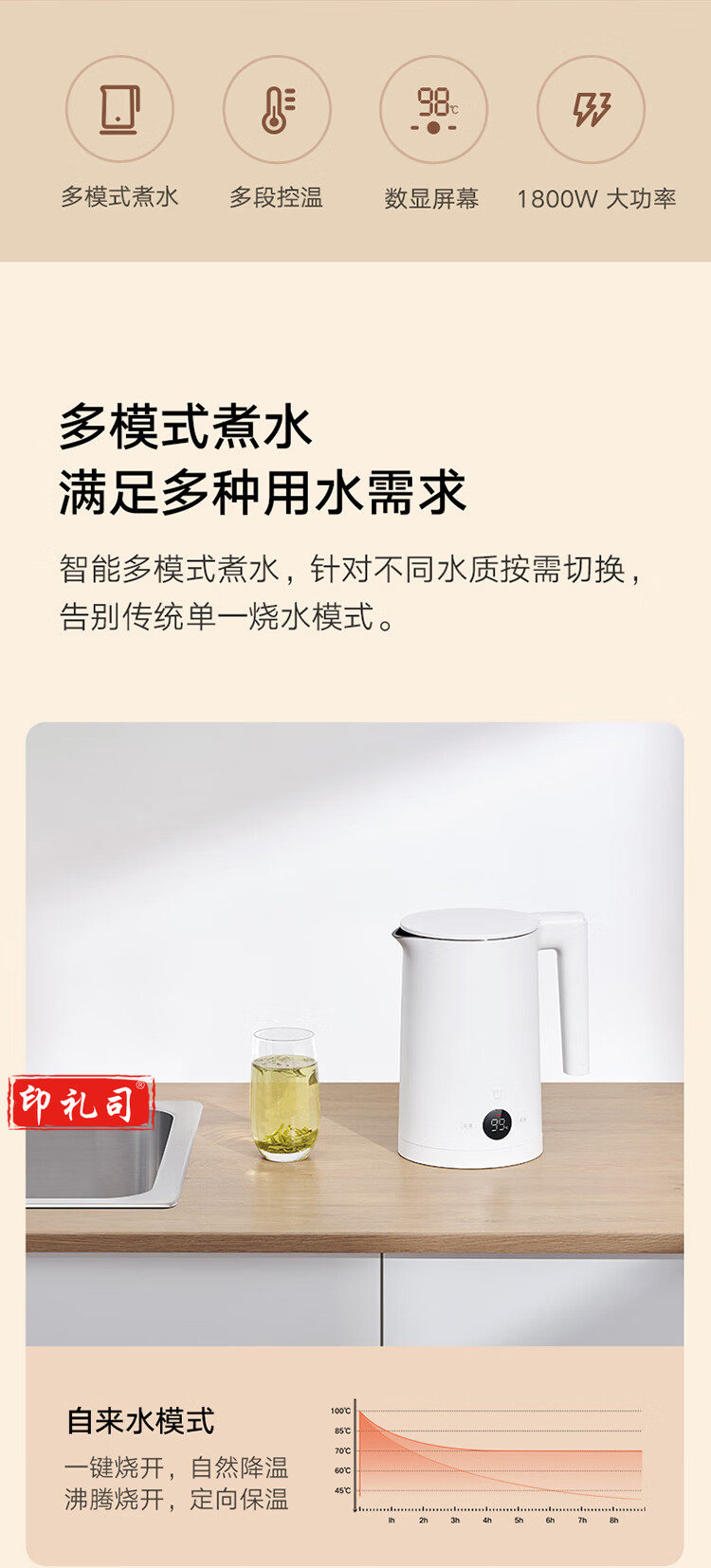 米家 恒温电水壶2 多段控温 高清实时数显 双模式煮水 1800W速热烧水