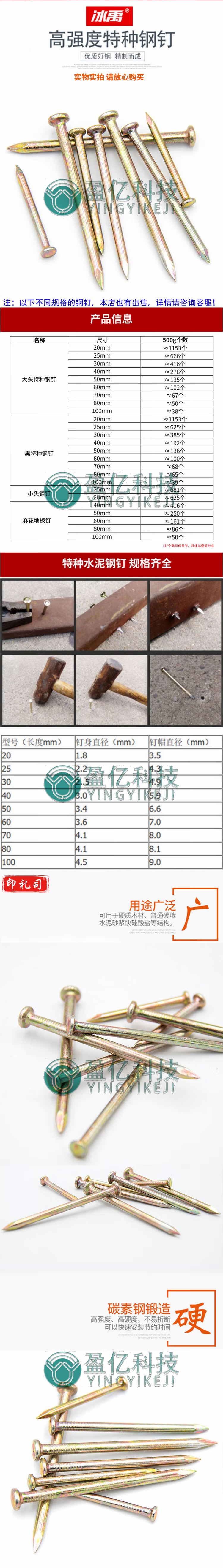 冰禹 BYJZ-1416 大头高强度特种钢钉 50mm大头特种钢钉(500g/袋)