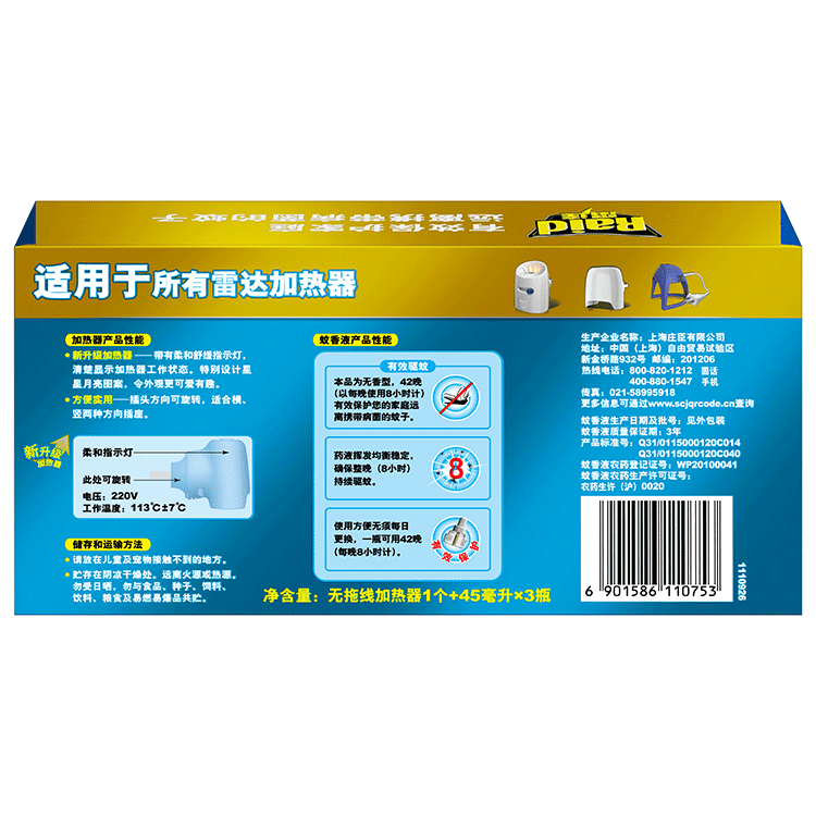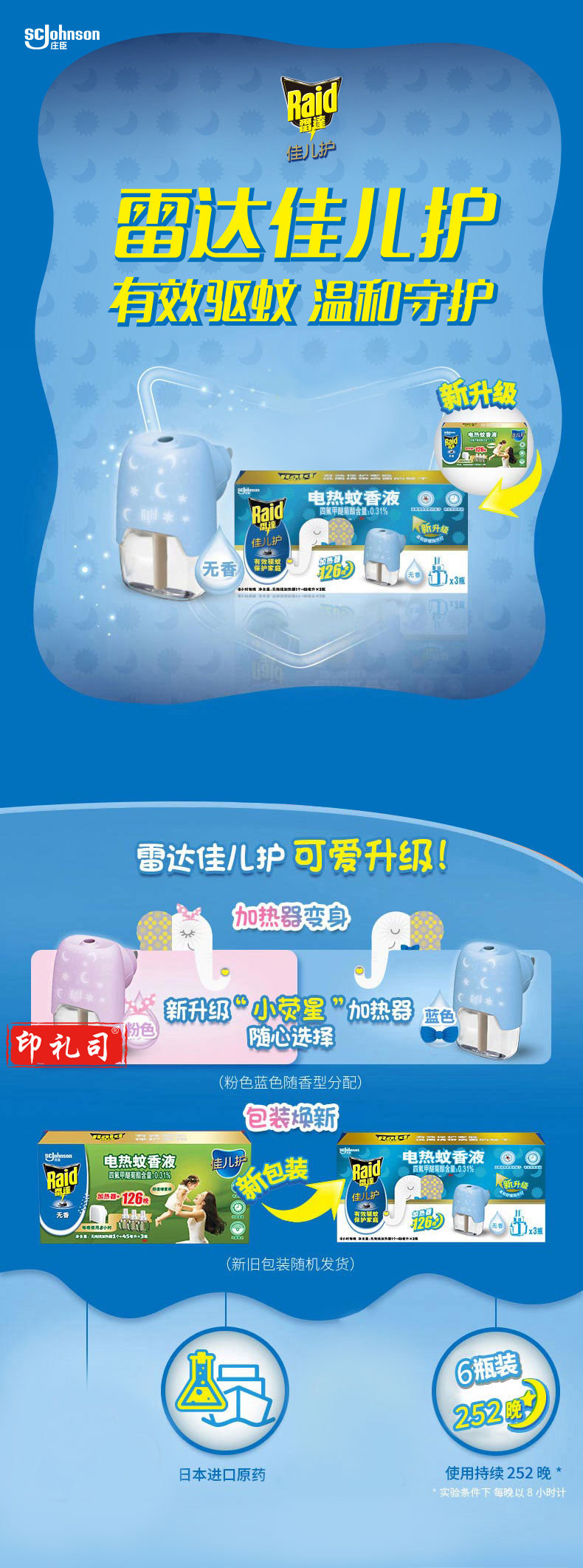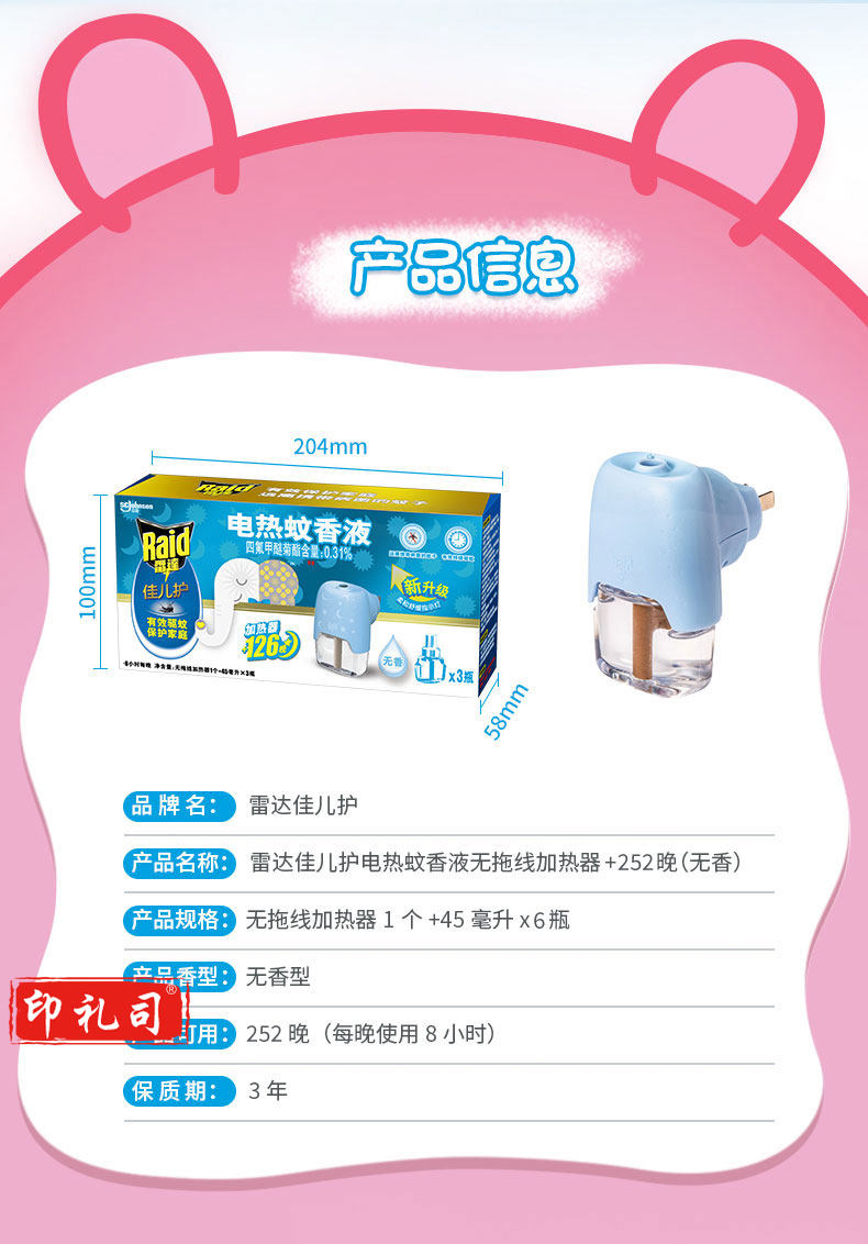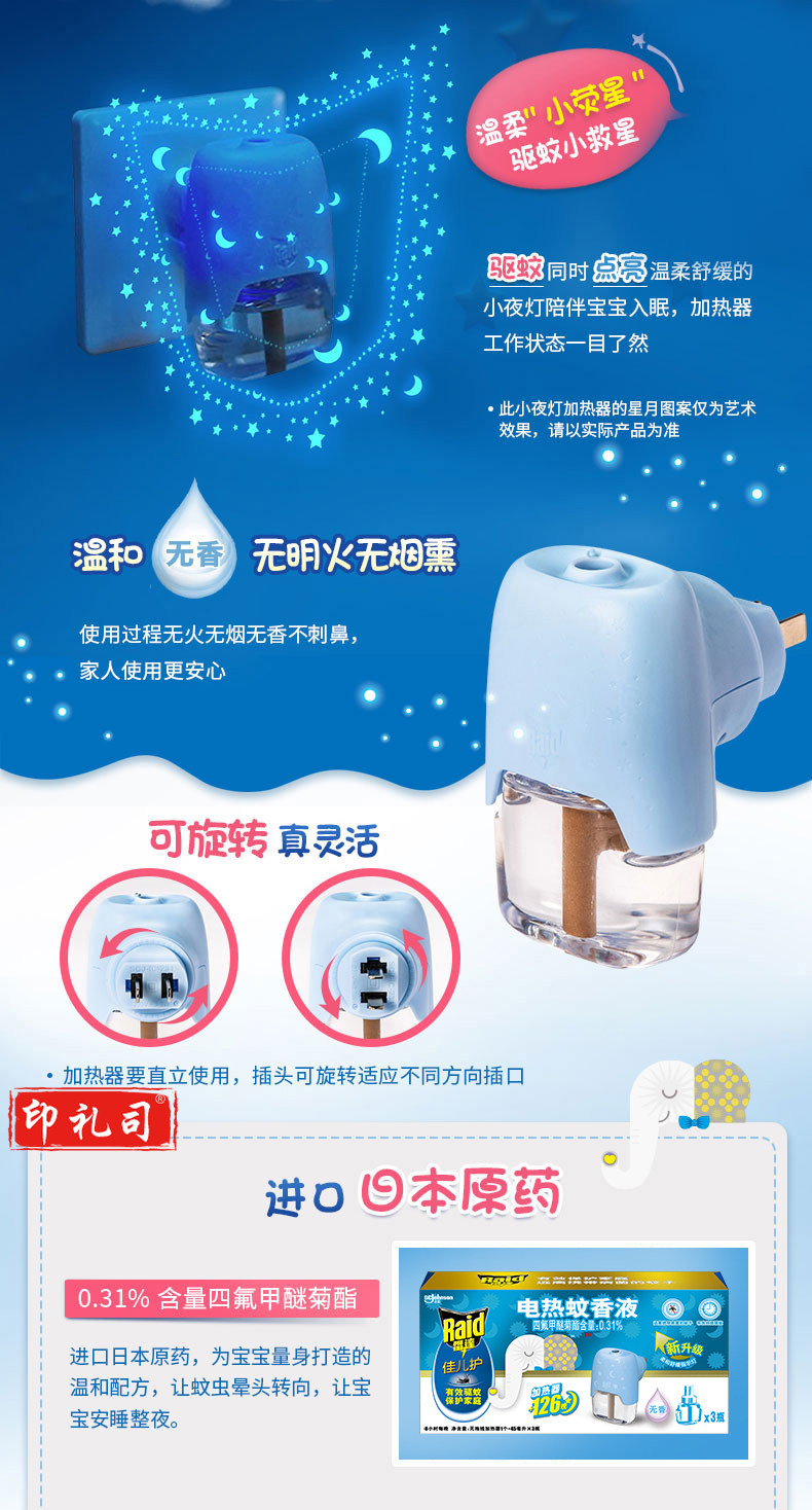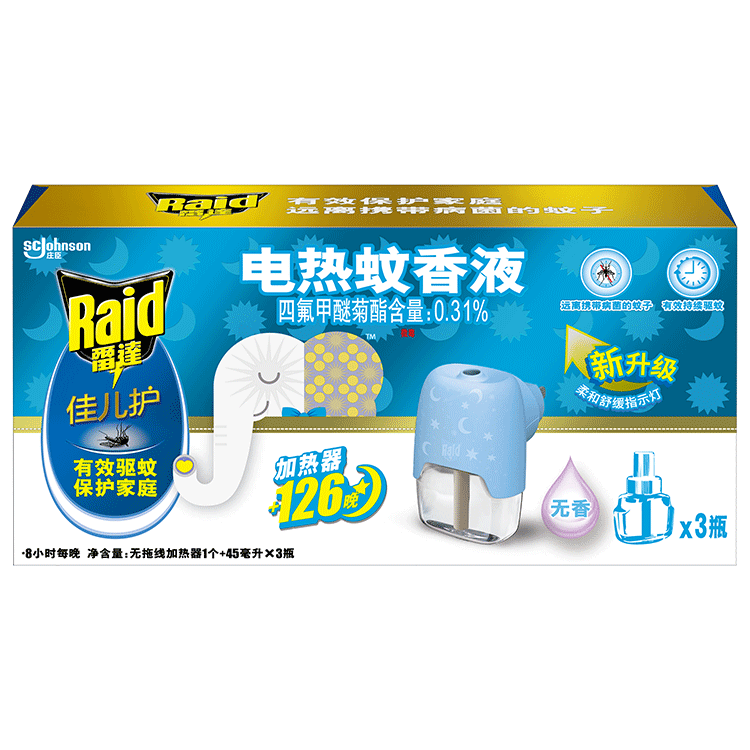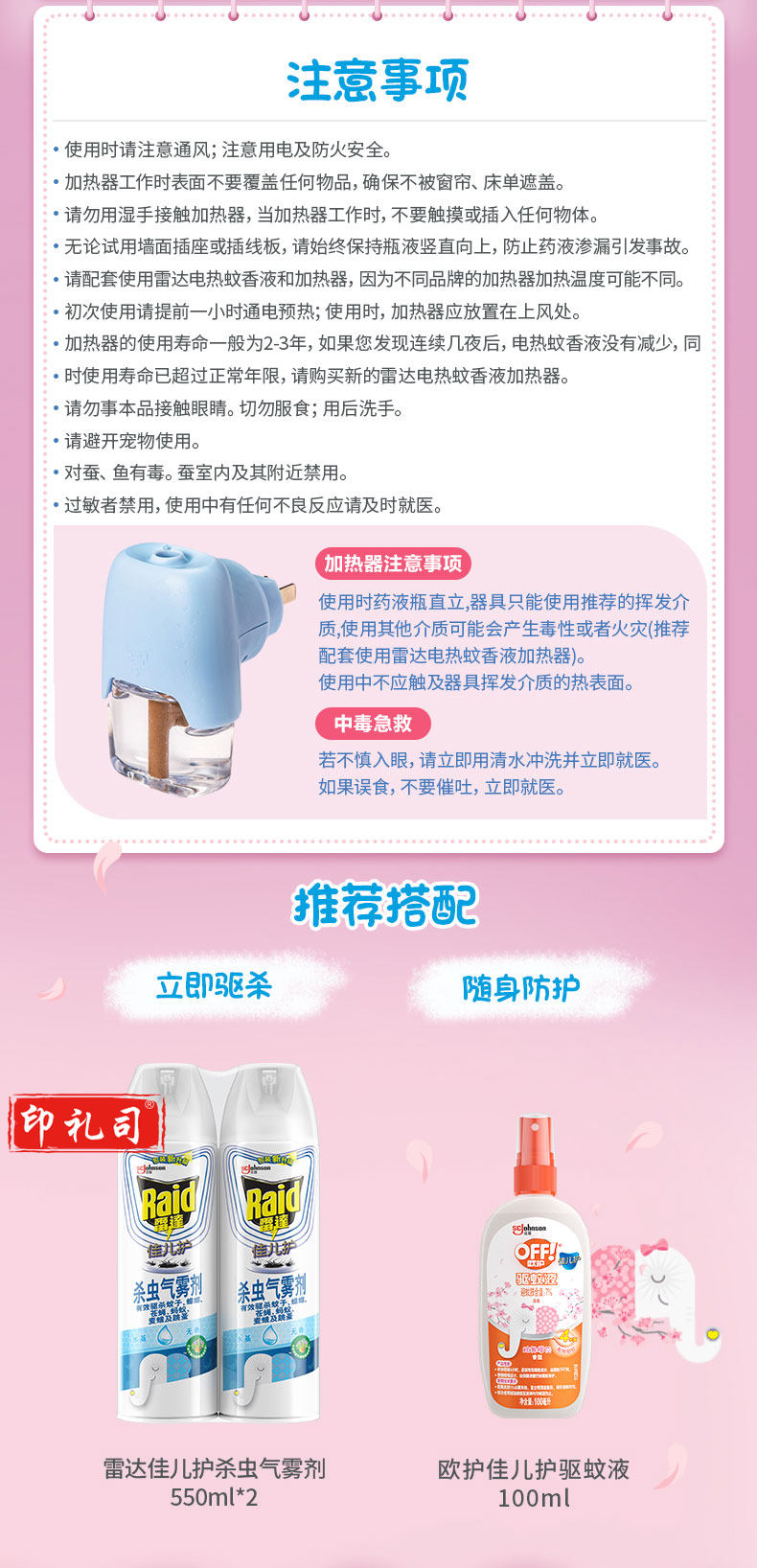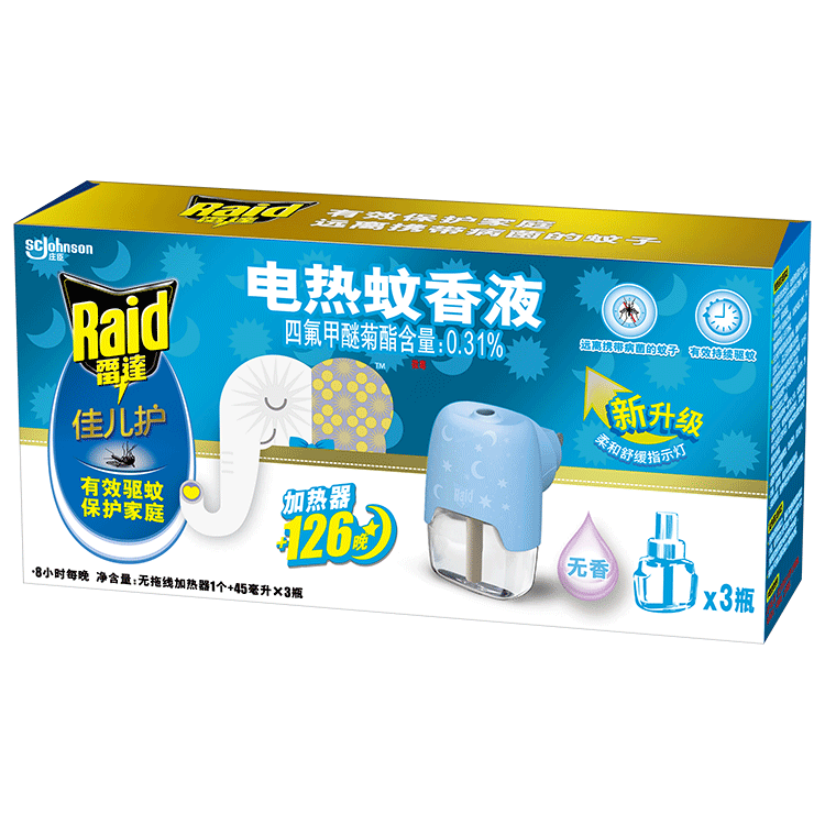 雷达 (Raid) 佳儿护电蚊香液 6瓶装 252晚+无线加热器 无香型100019388080