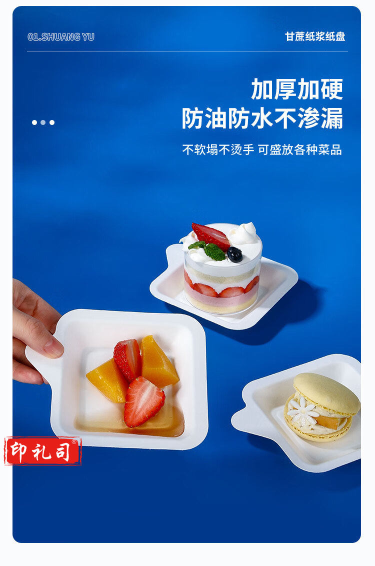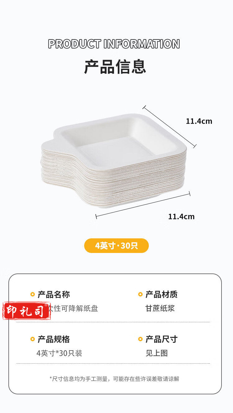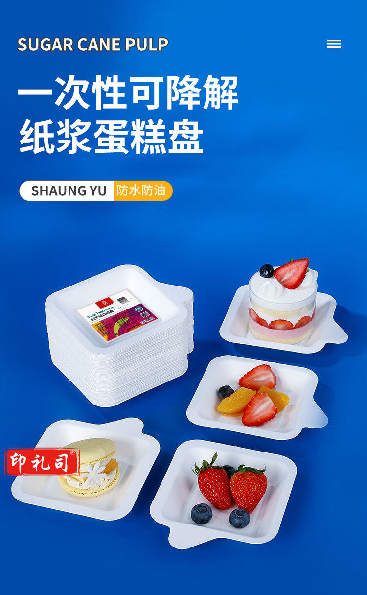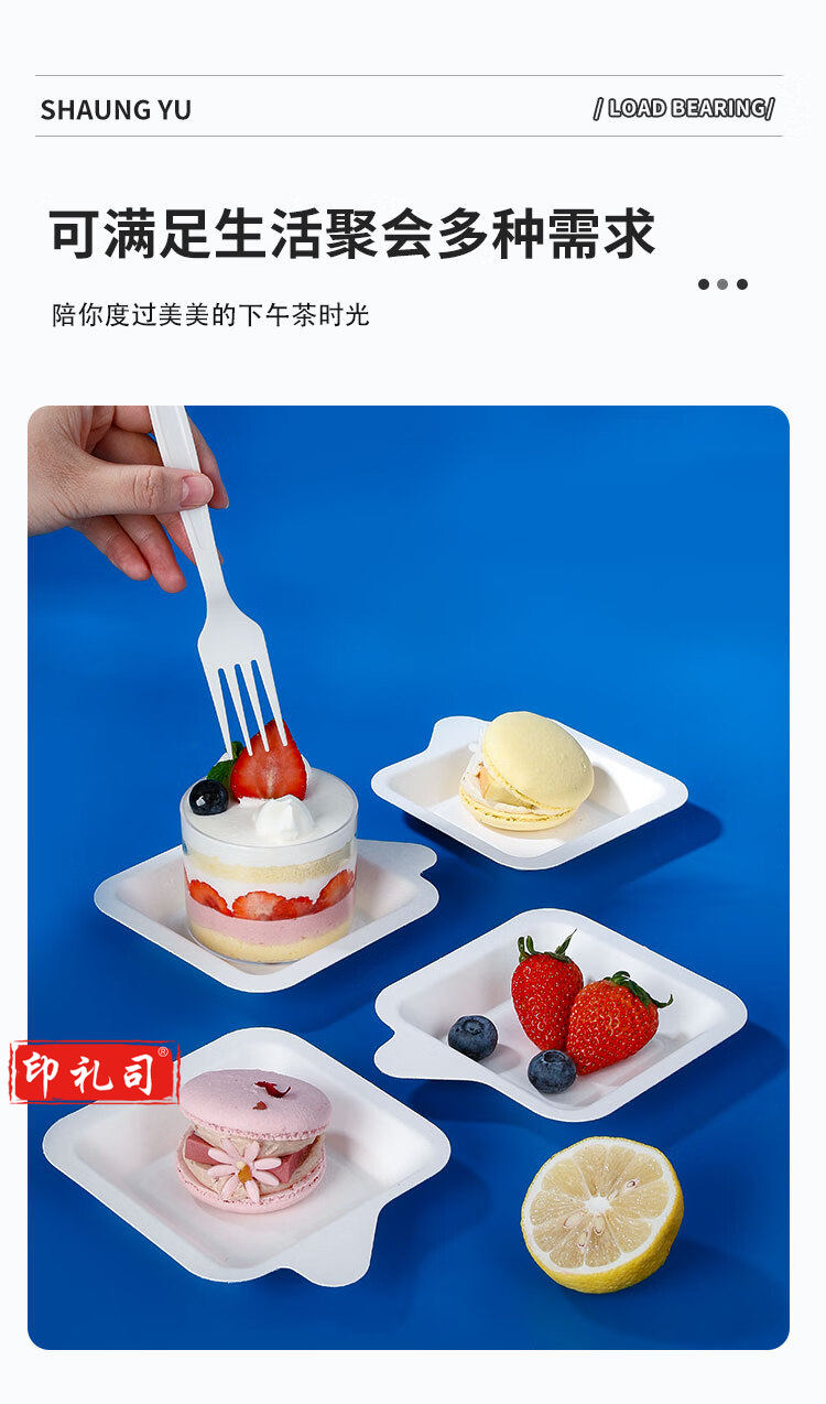 一次性盘子4英寸*50只可降解纸盘方形纸碟蛋糕盘环保餐盘餐具用品