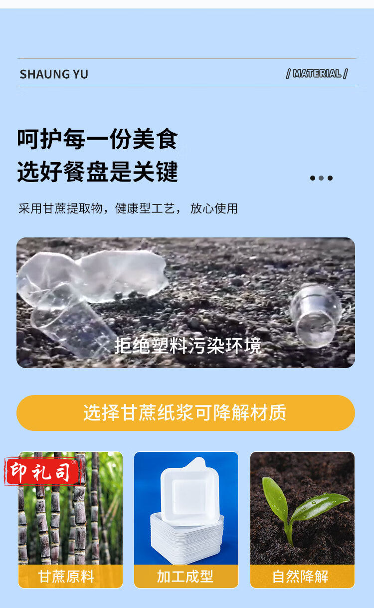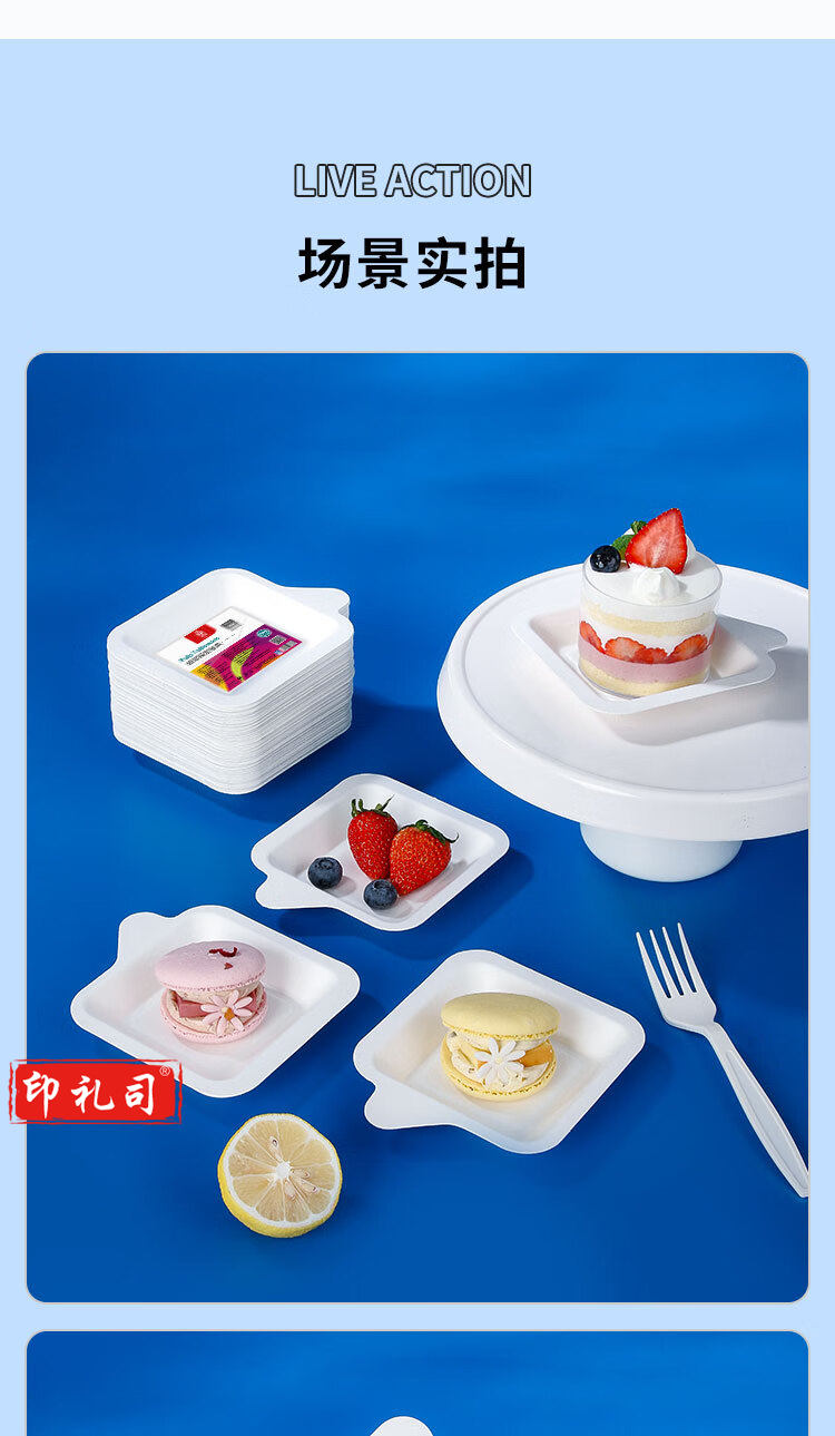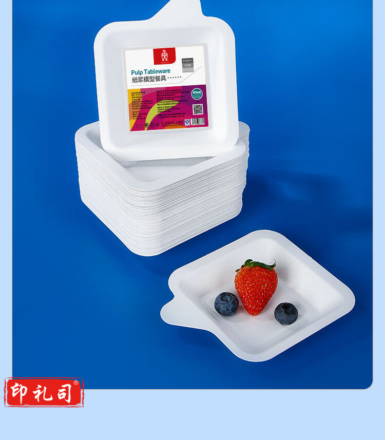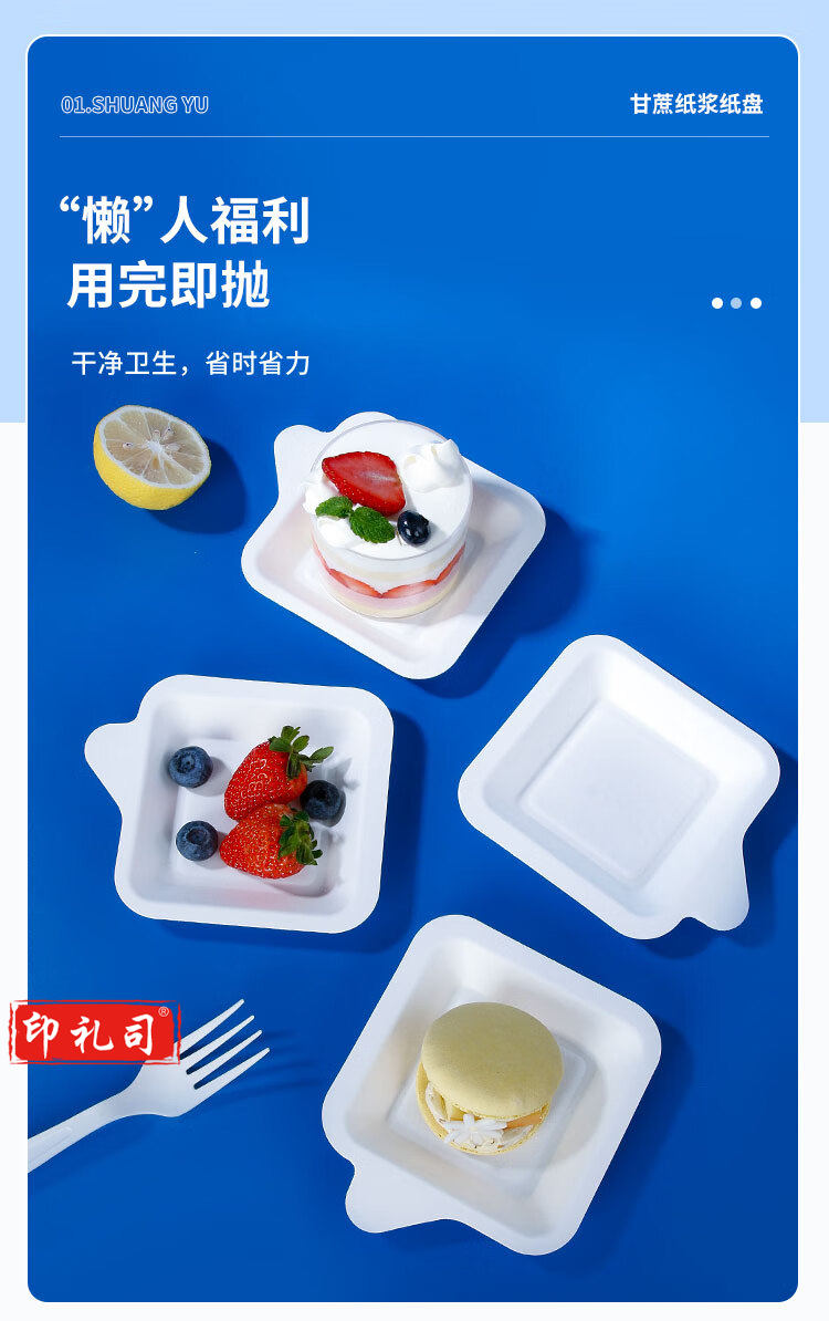 一次性盘子4英寸*50只可降解纸盘方形纸碟蛋糕盘环保餐盘餐具用品