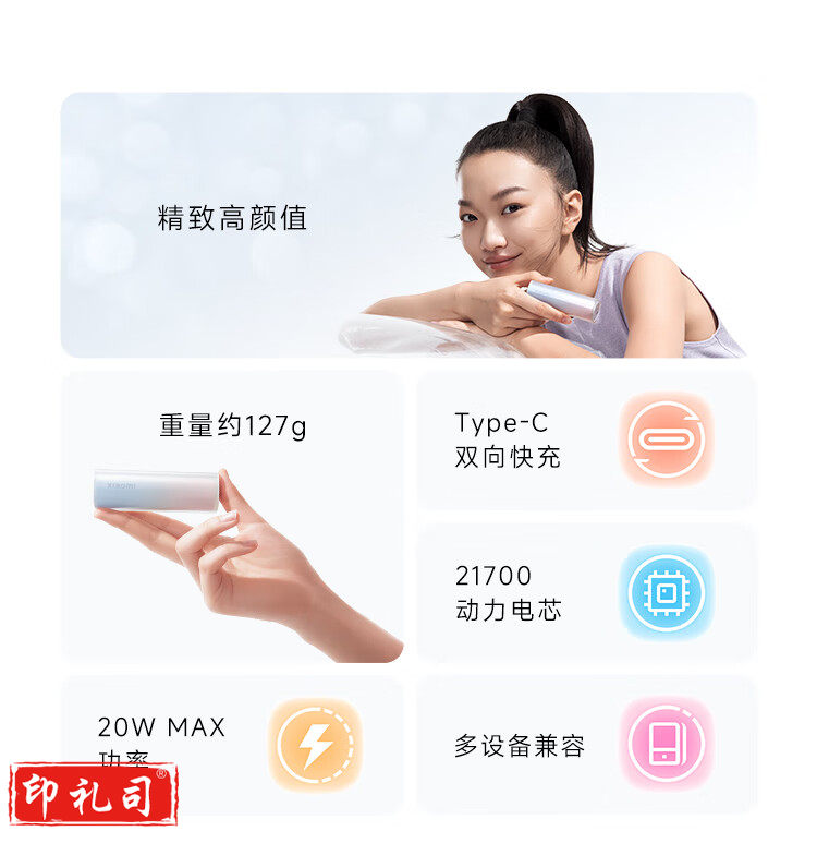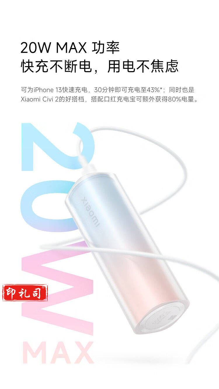 小米(MI)移动电源 xiaomi充电宝 5000mAh 口红版 适用小米红米手机 iPhone14/13 充电宝
