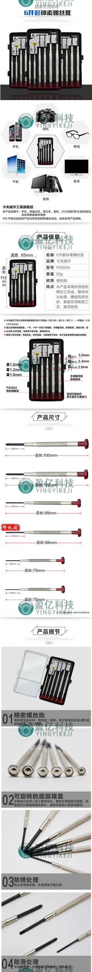 卡夫威尔 铬钒钢钟表批 螺丝批 精密螺丝刀 改锥组 可拆笔记本 6件套 PS5004