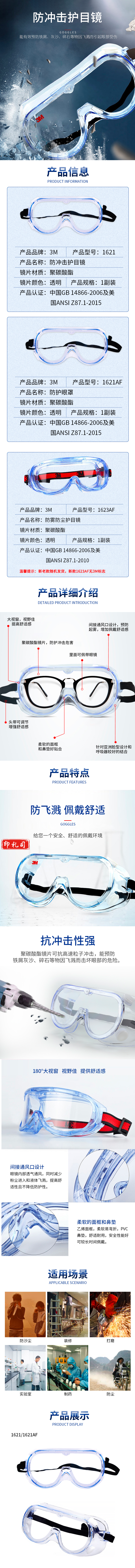 3M 1621AF 护目镜 防护眼罩 有效防护液体喷溅 防雾