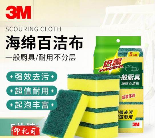 3M思高海绵百洁布洗碗布刷碗擦锅海绵擦 G6215厨具清洁耐用去油污 绿黄色5片装
