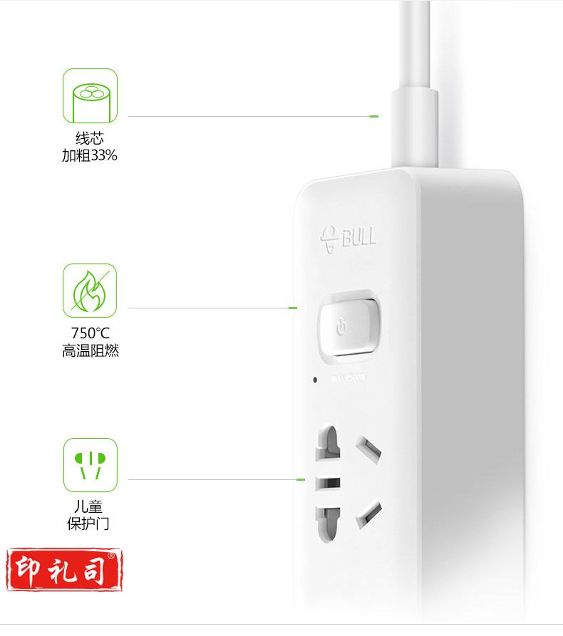 公牛(BULL)GN-UUA124 1.5M新国标 公牛USB插座排插线板插排接线板电源转换器插板家用拖线板