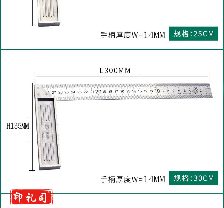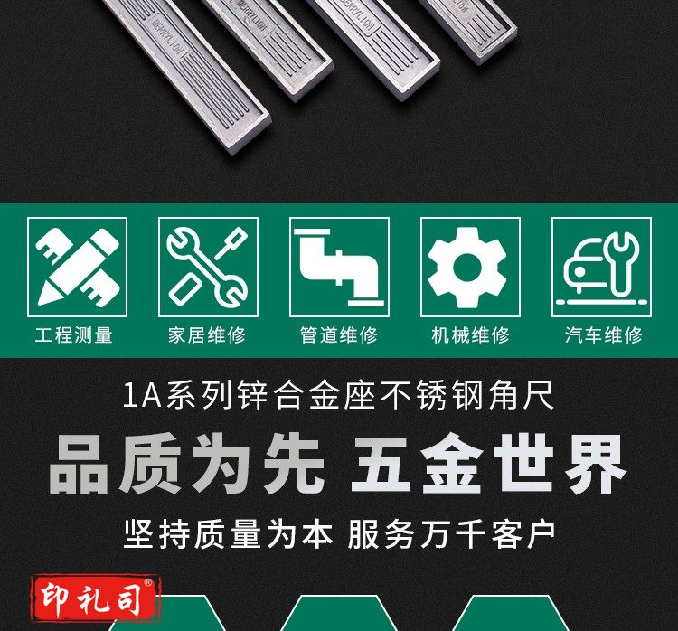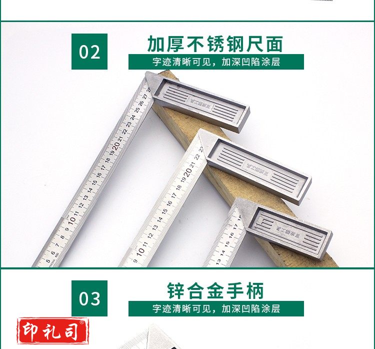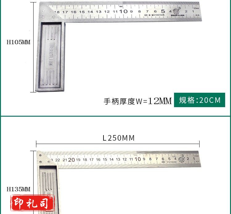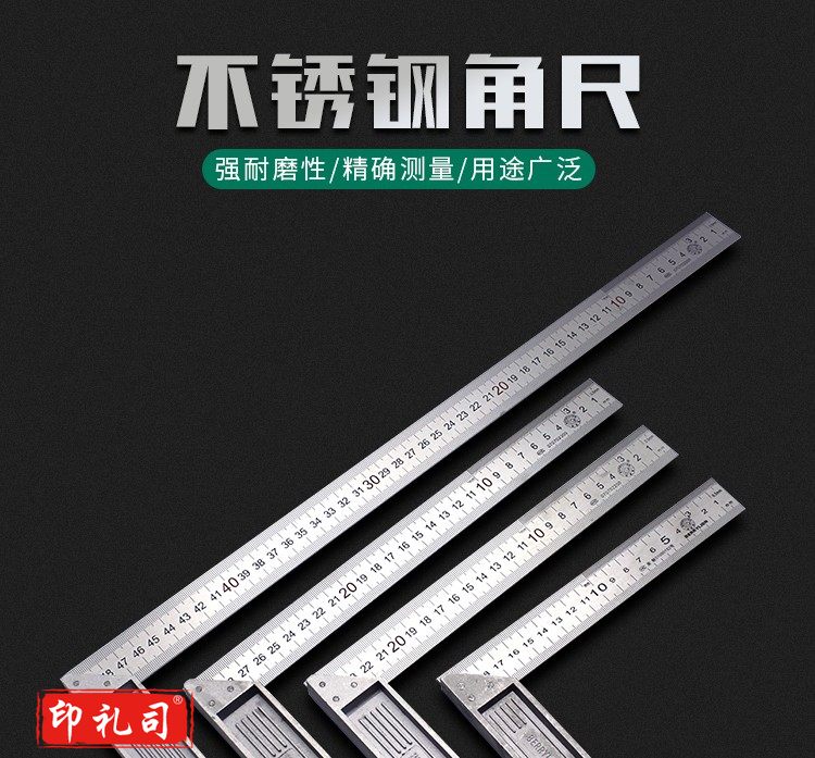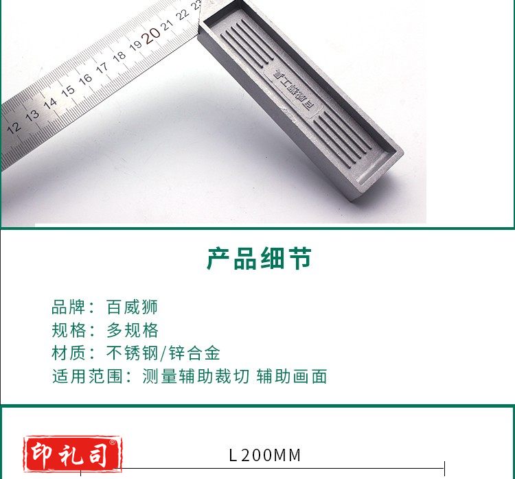 百威狮高精度合金木工角尺90度加厚铝合金角度尺不锈钢直角拐尺L型测量靠尺装修钢板尺拐角尺组合角尺 锌合金角尺8/10/12/20英寸各一把/共4把