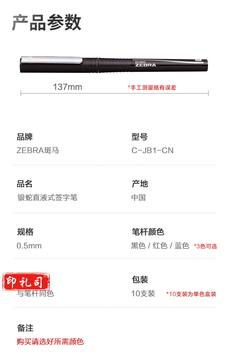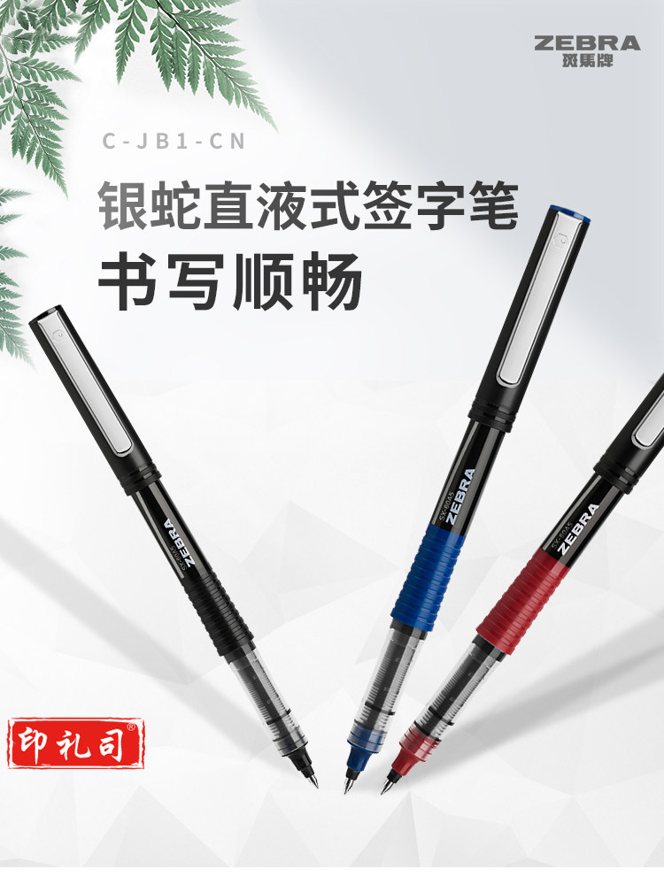 斑马牌(ZEBRA)银蛇直液式签字笔 0.5mm子弹头中性笔 学生考试笔 C-JB1 黑色 10支装