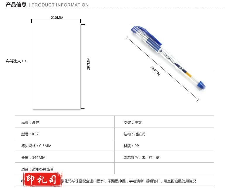 晨光 K37 中性笔0.38mm 记账笔水笔特细笔签字笔 蓝 12支