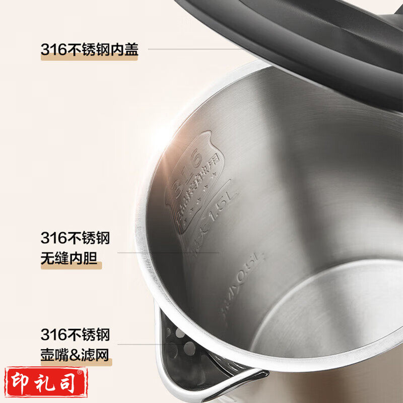 美的(Midea)电热水壶烧水壶保温热水壶1.5L大屏温显5段控温沸腾除氯316不锈钢MK-SEK1511【线下同款】