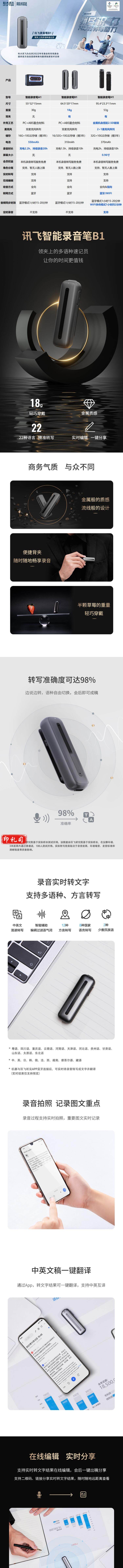 科大讯飞智能录音笔B1转写助手 32G