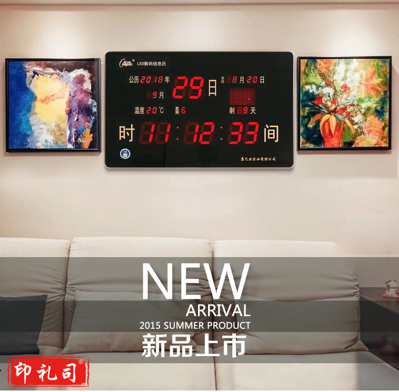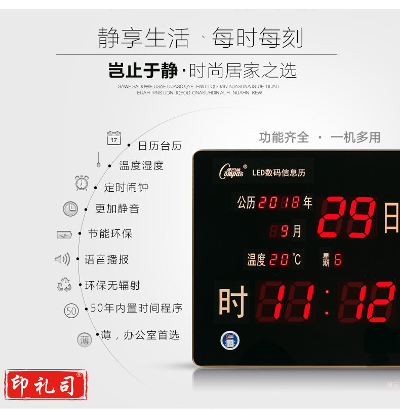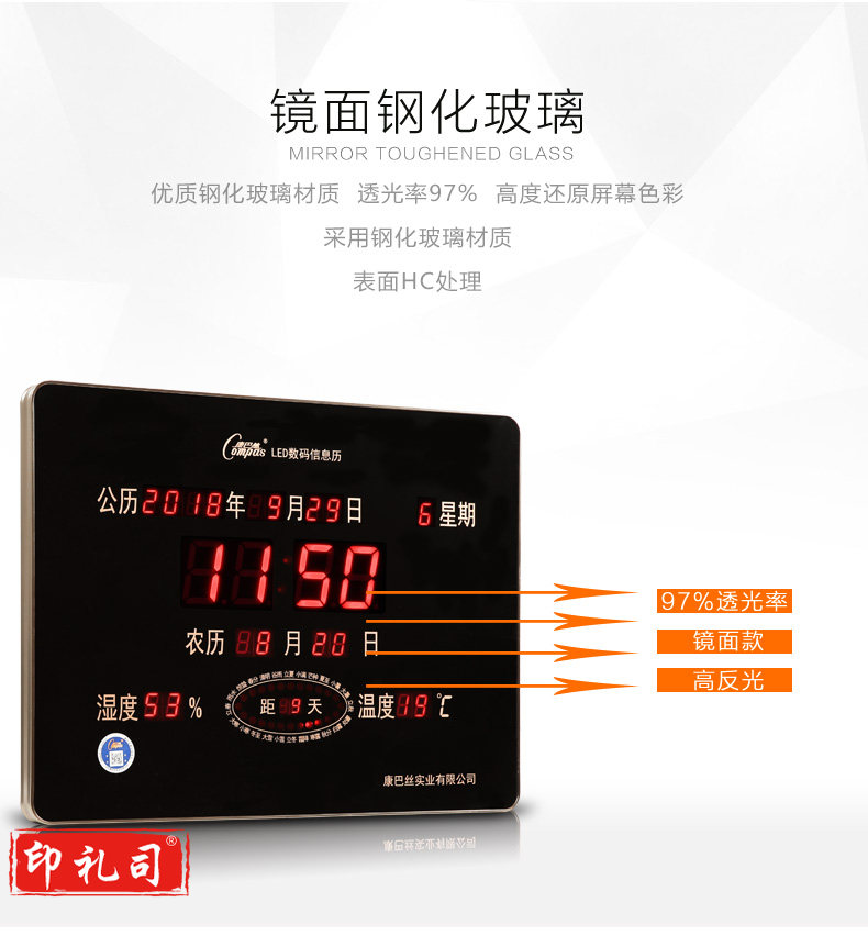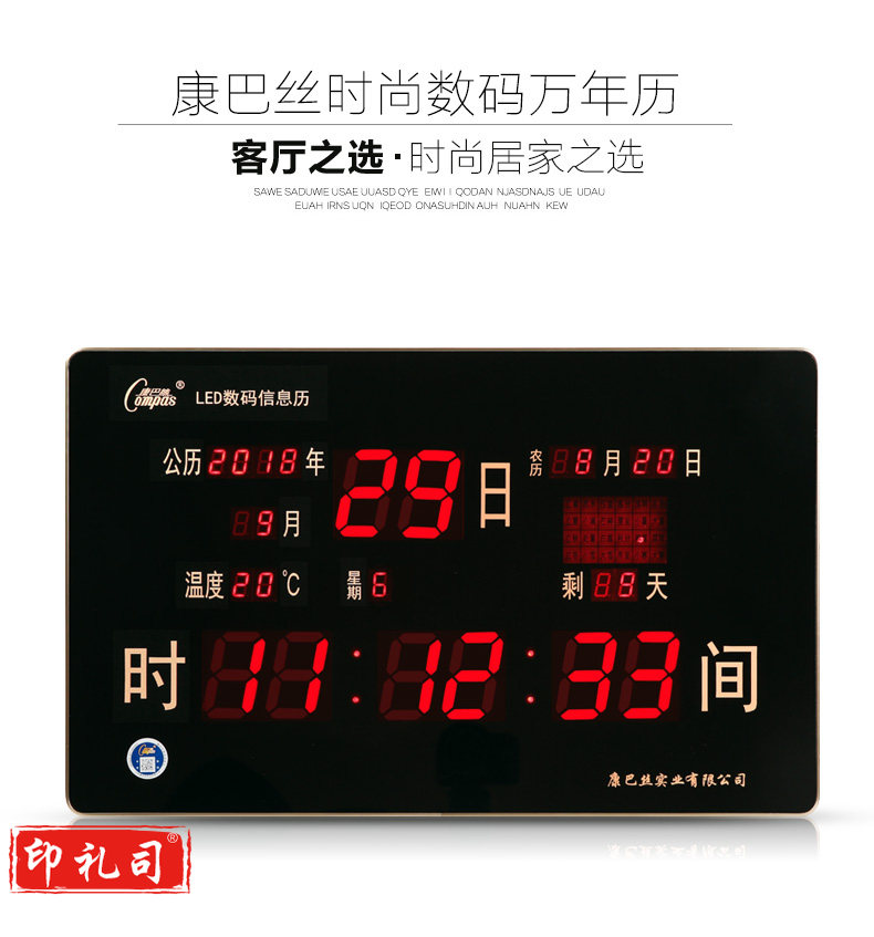 康巴丝 万年历电子挂钟 夜光超薄钟表 95*55温湿度数码 20英寸