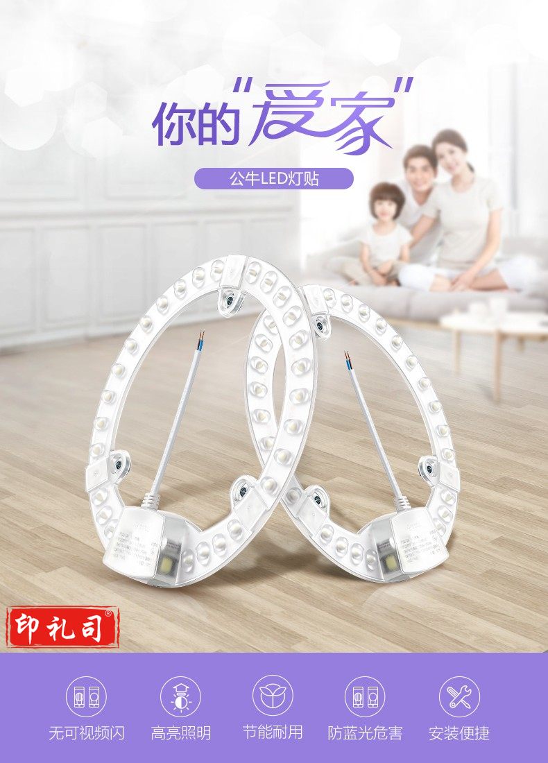 公牛爱眼 MD-A018B-AS透镜模组圆形灯贴 led吸顶灯改造灯板灯芯 18w/白光/6500K (定制)