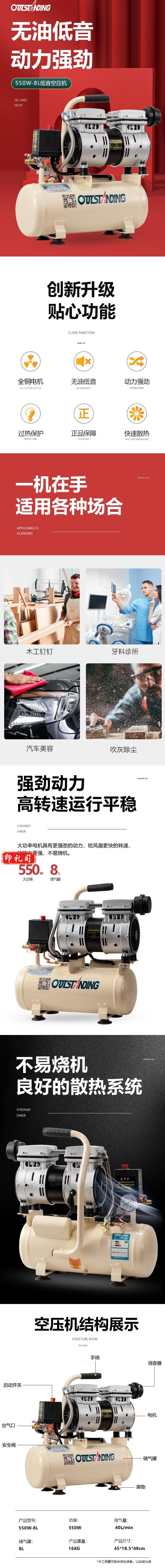 OUTSTANDING奥突斯无油低音空压机小型气泵 550W8L JC.1811