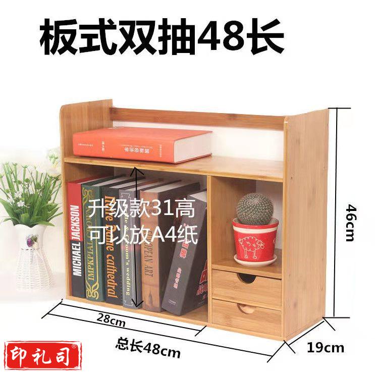 简易书架桌上小书架迷你伸缩小型办公桌面收纳二层48长双抽屉