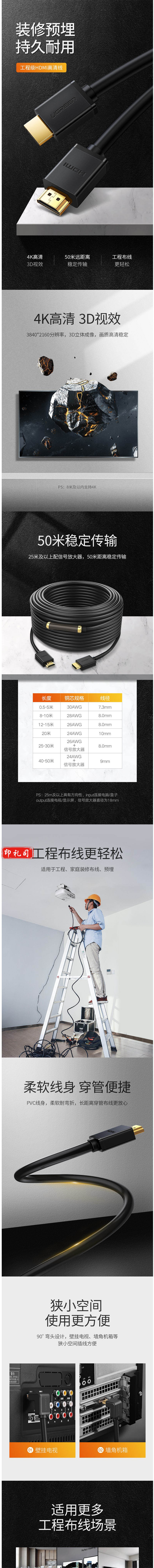 绿联 HDMI线2.0版 4K高清数字转换线 15米