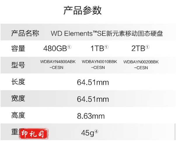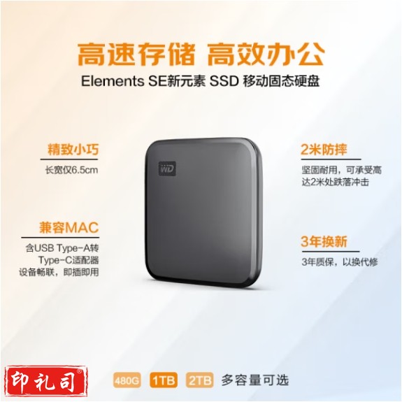 西部数据(WD) 480GB 移动固态硬盘(PSSD)Elements SE新元素 SSD type-c接口 外接直连手机笔记本电脑两用
