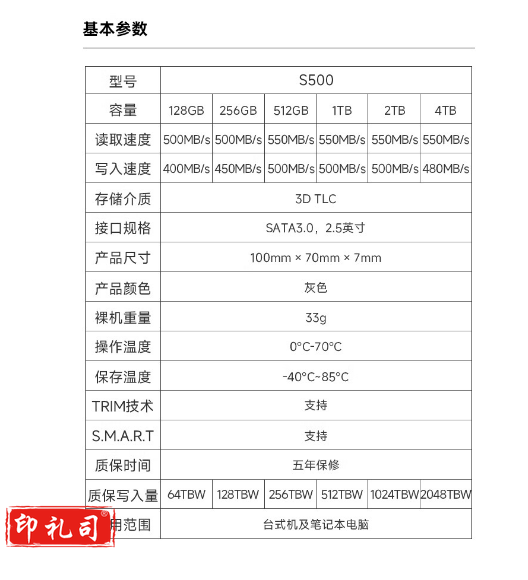 爱国者 (aigo) 1TB SSD固态硬盘S500 2.5英寸 SATA3.0接口TLC颗粒 读速550MB/s 写速500MB/s台式机/笔记本