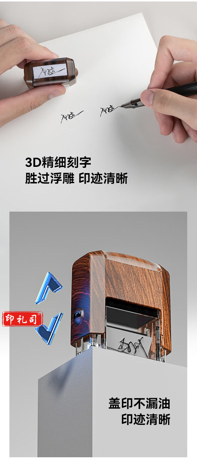 卓达(trodat)签名印章手签章姓名印章个性定制名字印章木纹签字章护士个人商务印章办公室神器刻章 签名章 胡桃木纹(深色)26*9 yykj-240325151921