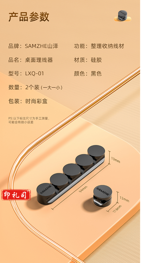 山泽(SAMZHE)桌面理线器 收纳固定器 电脑线缆绕线器 耳机电线收纳整理卡夹收线夹缠绕器 黑色 LXQ-01
