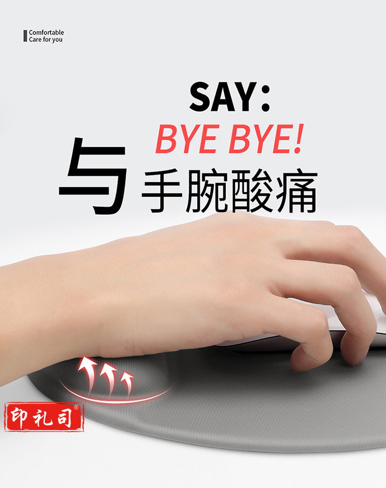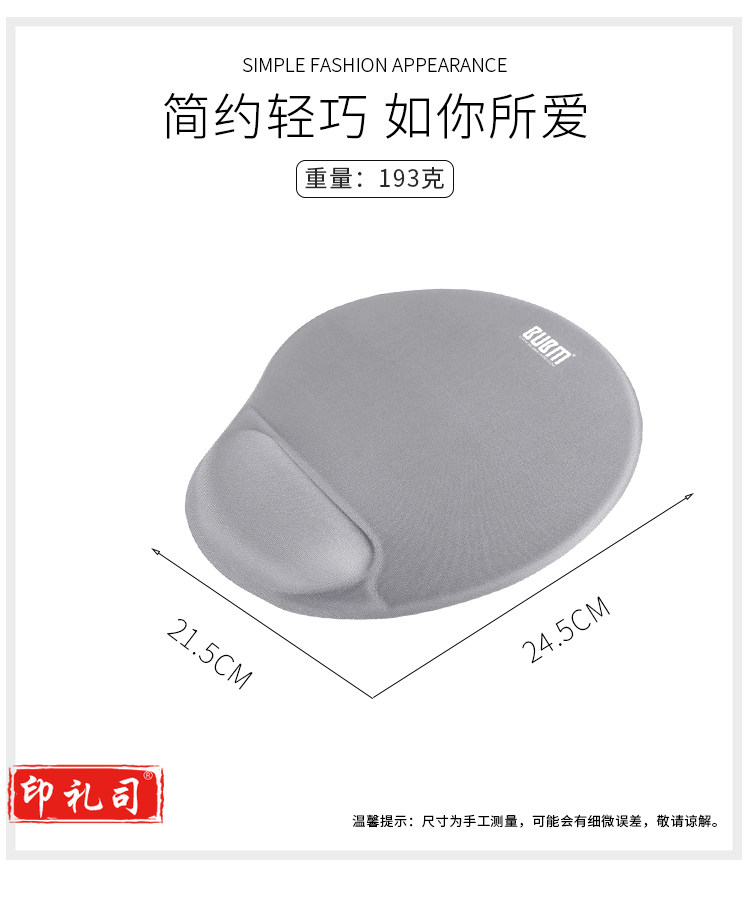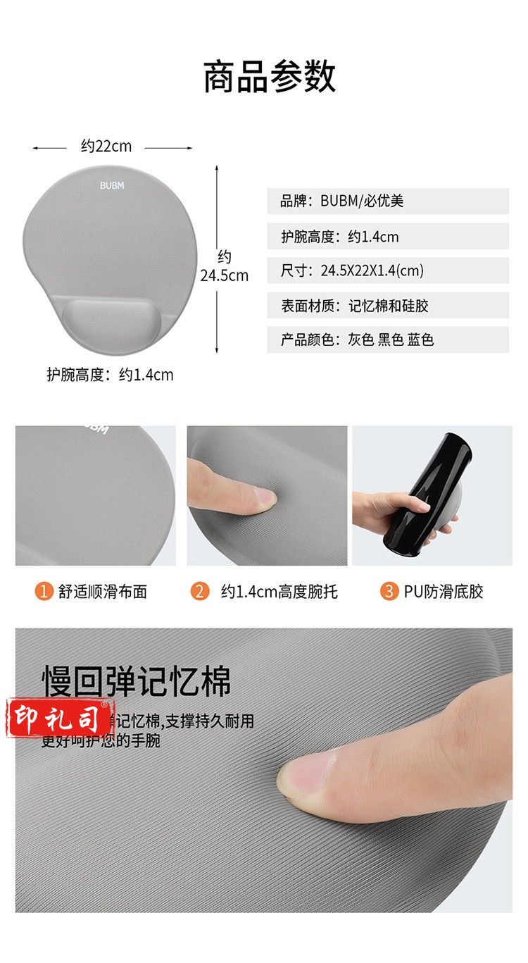 BUBM 鼠标垫护腕硅胶手腕垫记忆棉立体鼠标垫电脑办公加厚鼠标垫 灰色不规则款