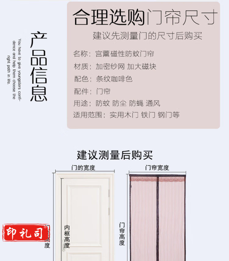 宫薰 全磁条防蚊门帘磁吸软纱门窗纱夏季加密网纱帘110*210cm