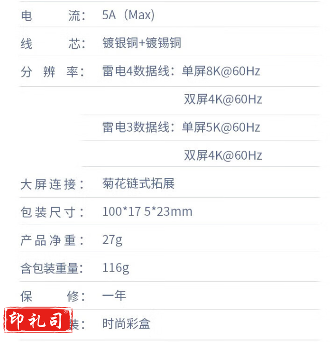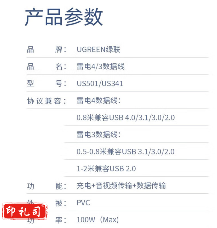 绿联 0.8米 30389黑色 雷电4Type-C公对公数据线