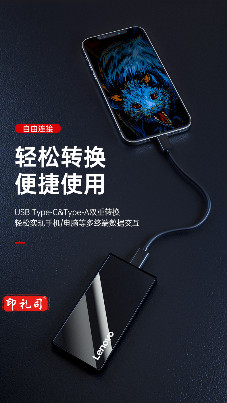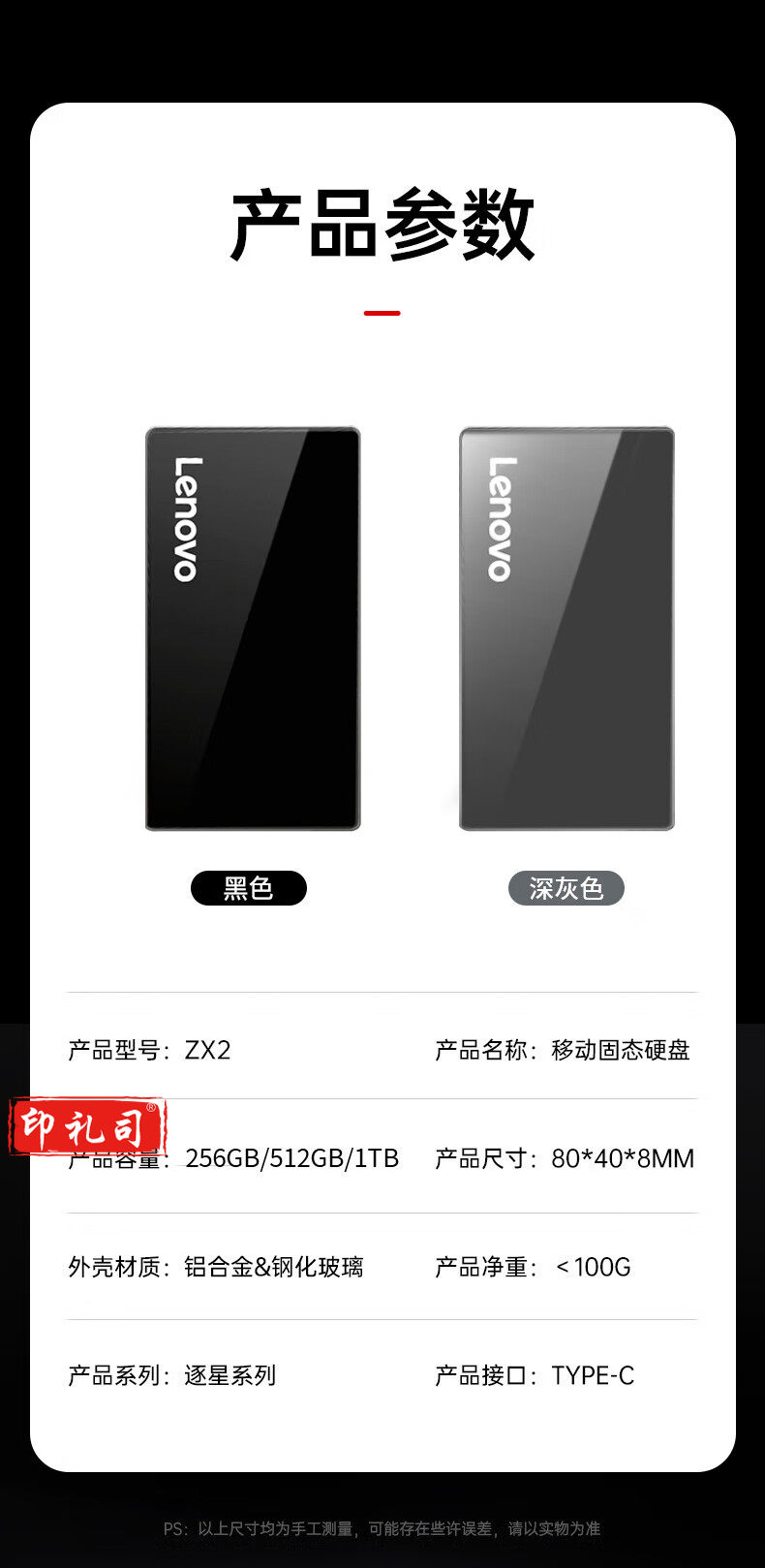 联想(Lenovo) 1TB 移动固态硬盘(PSSD)Type-c USB3.1接口 ZX2系列 黑色