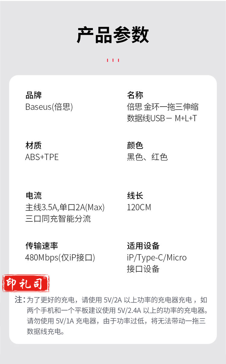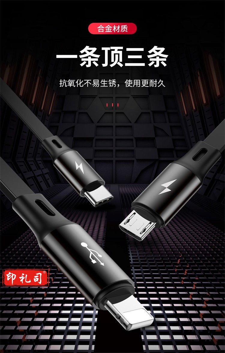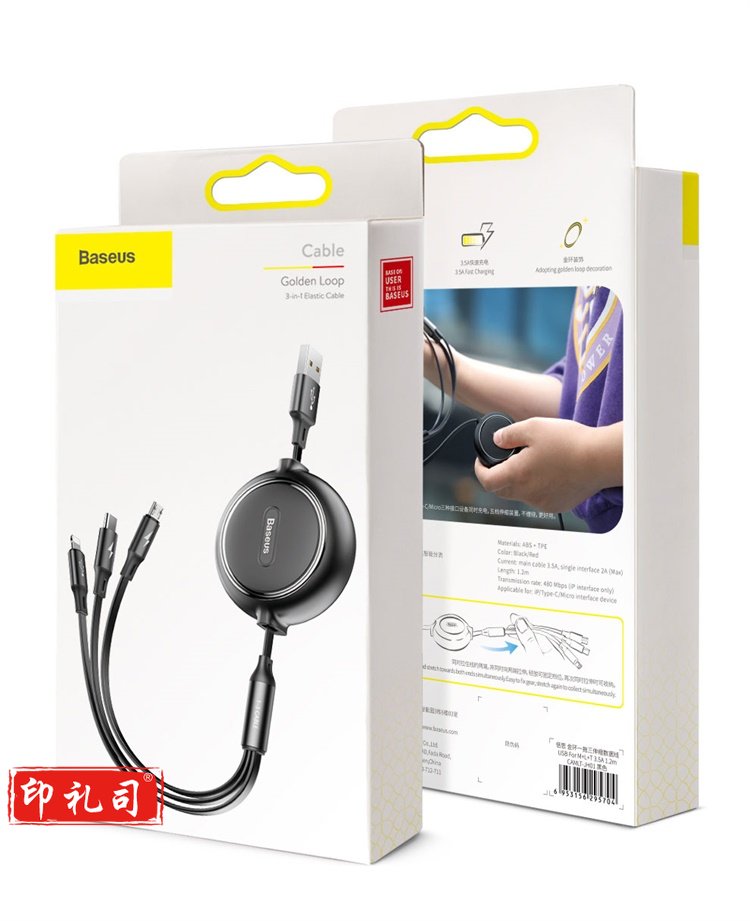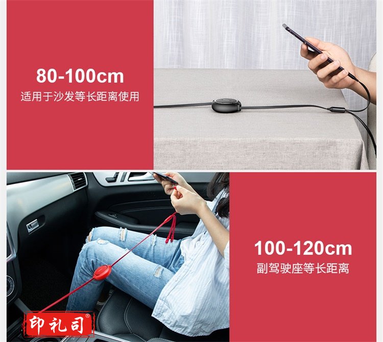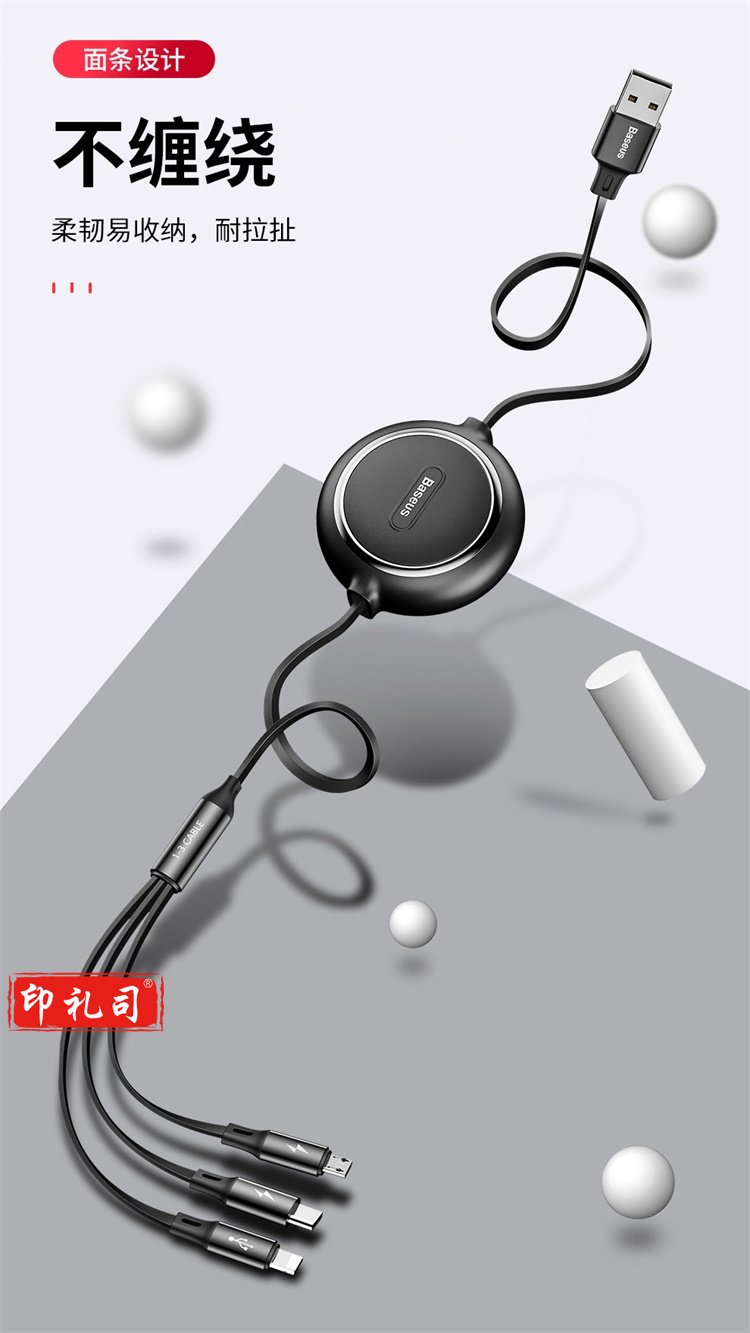 倍思 三合一伸缩数据线 苹果安卓type-c一拖三快充 适用iphone13/12/11/XR小米华为车载手机充电器线USB-M+L+T 1.2米红