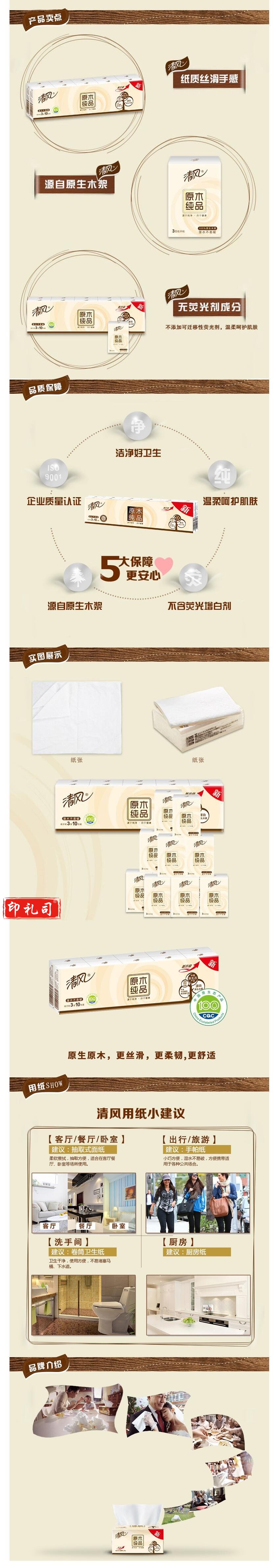 清风原木手帕纸 B64GC 12包/条