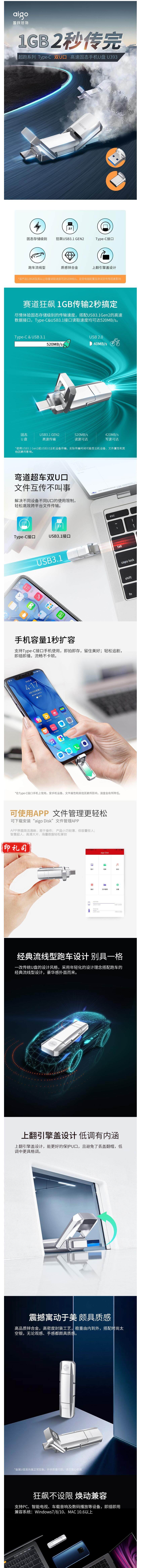 爱国者 256GB USB3.1 Type-C双U口 高速固态U盘 U393 读520MB/s 写420MB/s 手机U盘 狂飙移动存储