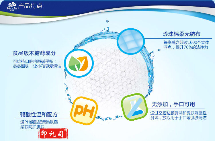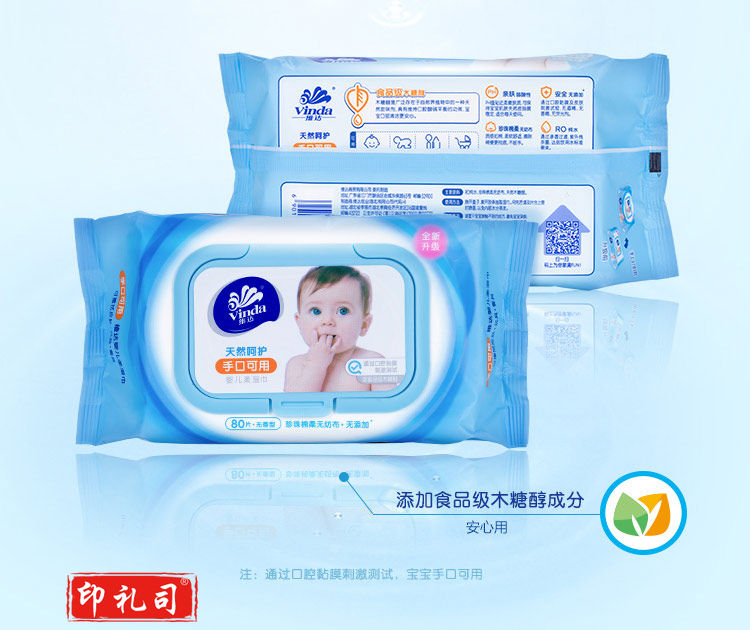 维达(Vinda)婴儿湿巾VW2004手口湿纸巾80片/包 抽取式湿纸巾 5包装