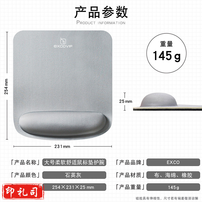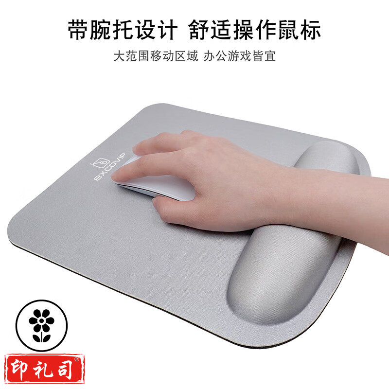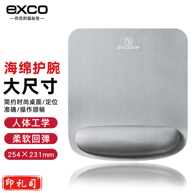宜适酷(EXCO)超大号软护手腕鼠标垫护腕手托加厚记忆棉笔记本男凑单电竞游戏带人体工程学商务办公灰3791
