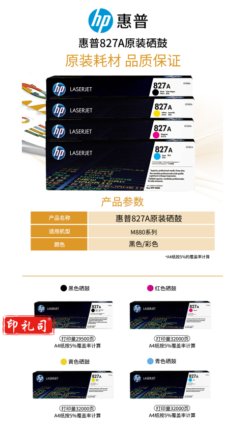 惠普(HP) 黑色粉盒 827A CF300A 适用M880Z(约29500页)