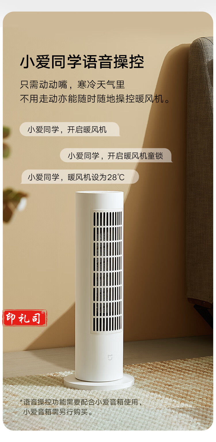 米家 小米暖风机Lite 电暖气取暖器电热暖气片 立式暖风机家用电暖器 开机即热 智能恒温节能智能互联