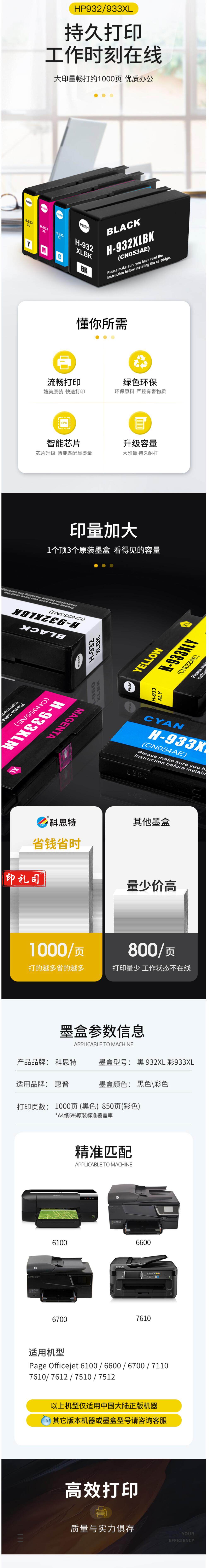 科思特 933XL墨盒 适用惠普Officejet 6600/6700/7110/7610/7612 蓝色