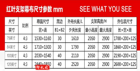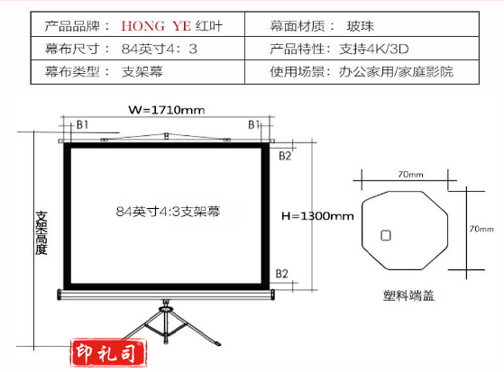 红叶(HONG YE) 84英寸带支架4:3投影幕布/幕布/投影幕/幕布/幕布/幕布 白色/玻珠