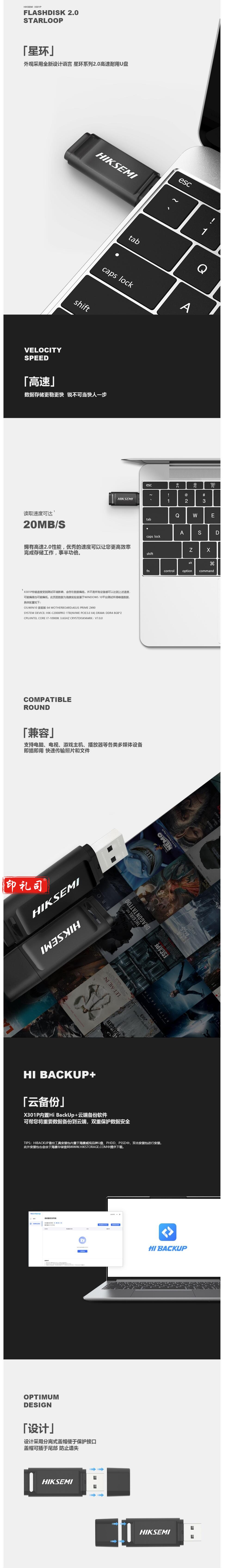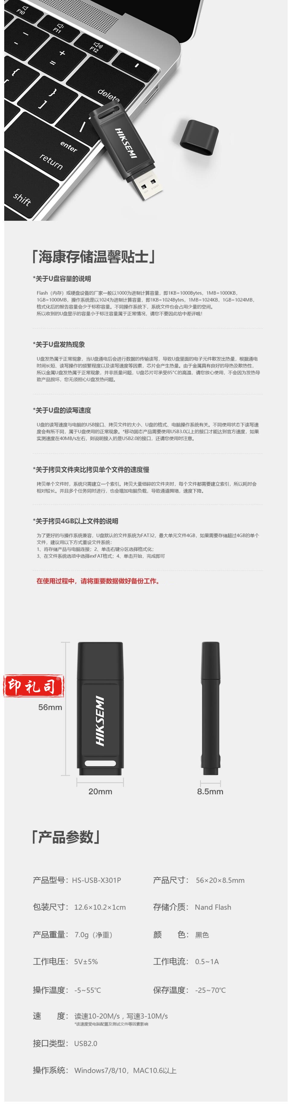 海康威视(HIKVISION) 4GB便携迷你黑色U盘 USB2.0 X301P