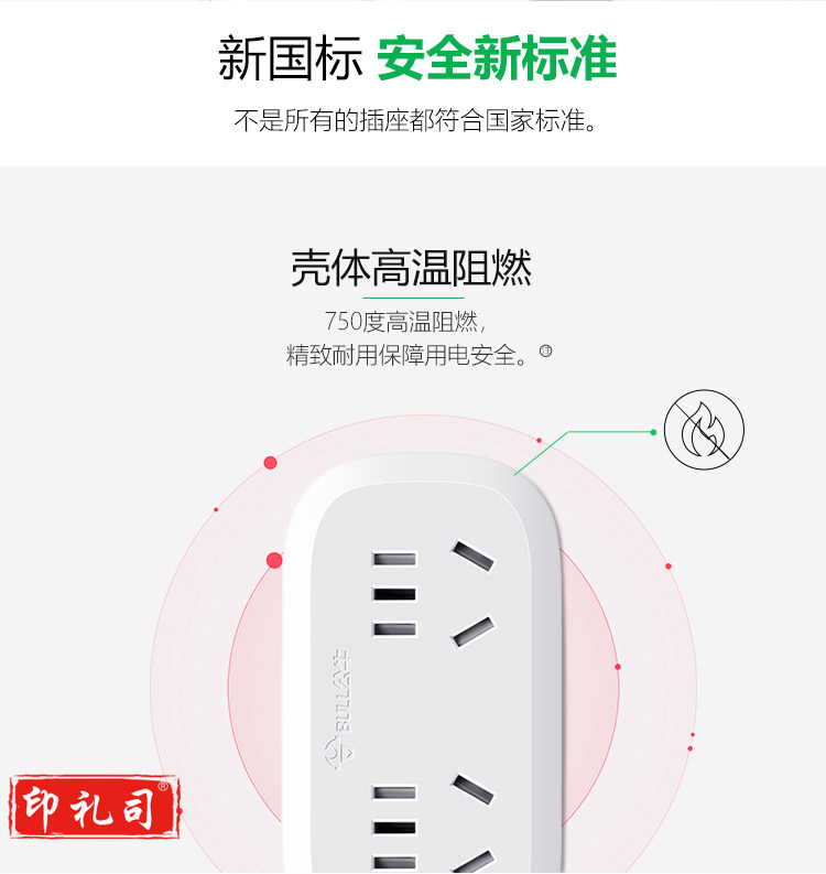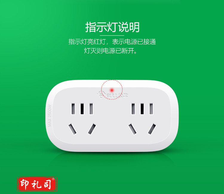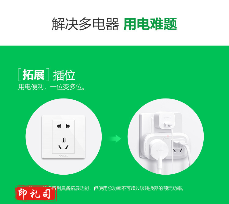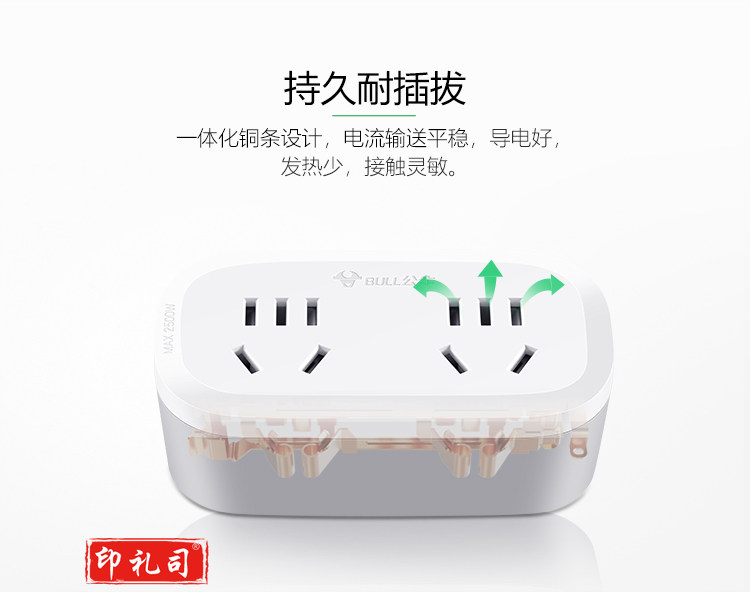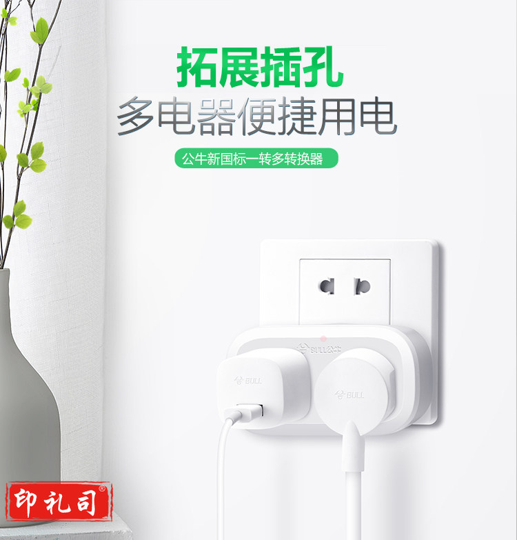 公牛(BULL)GN-903一转二插座/转换插头/电源转换器 适用于卧室、厨房 2位无线转换插座