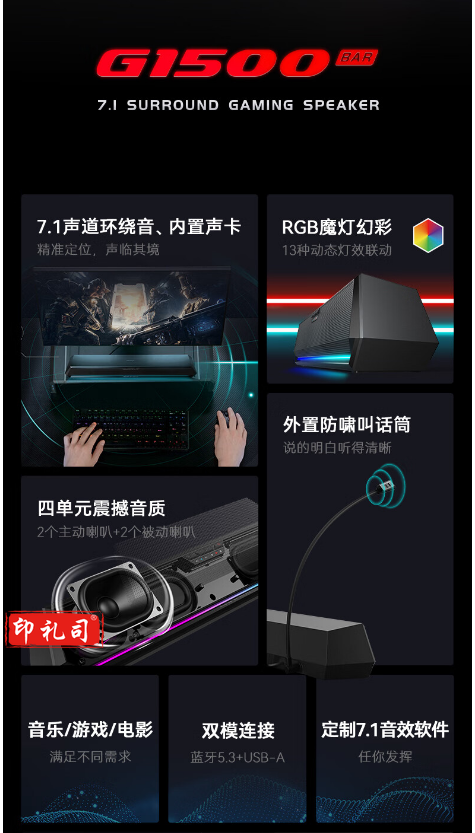 漫步者(EDIFIER)HECATE G1500bar 7.1音效电竞桌面游戏音箱防啸叫话筒蓝牙5.3电脑多媒体家用台式机笔记本音响灰色