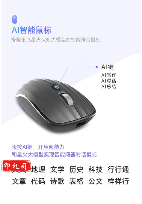 科大讯飞AI鼠标STD 语音鼠标无线鼠标家用鼠标办公可充电声控转文字办公 离线语音识别 科大讯飞AI鼠标STD