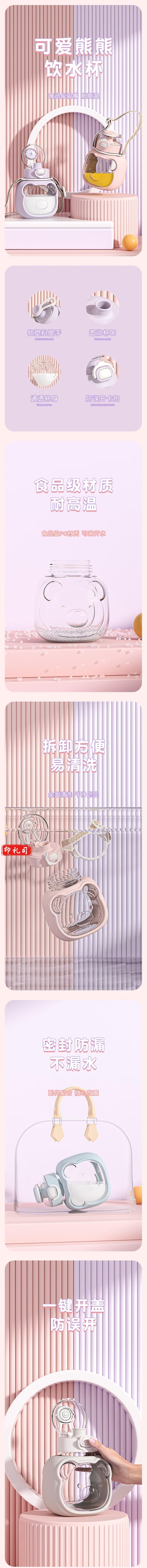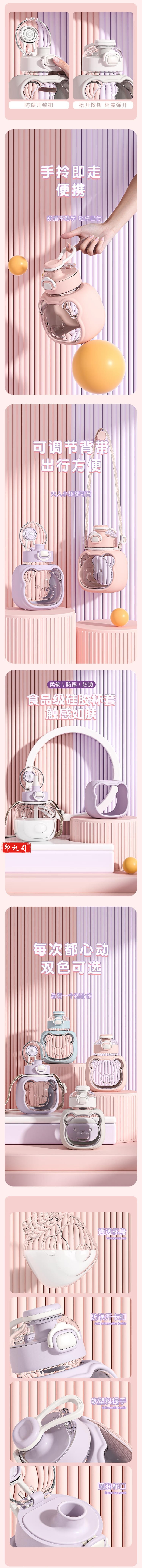 吸管水杯塑料杯 耐高温 随身杯 不漏水紫色1000ml CF.1089