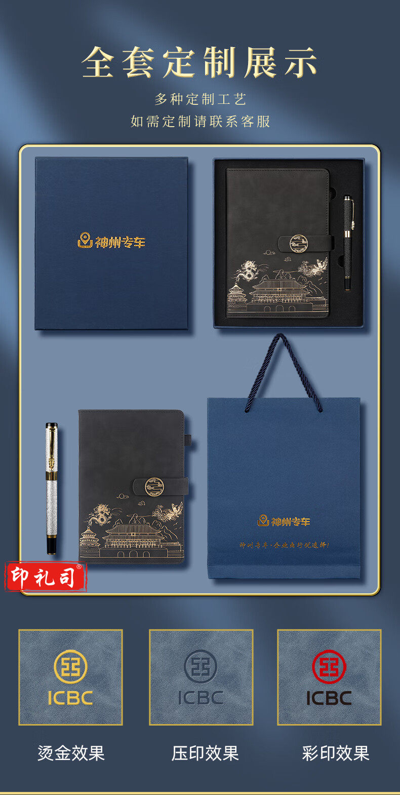 国为(COUVEZI) 可定制国潮故宫高颜值笔记本本子精美礼品套装记事本a5文具礼盒刻字商务伴手礼 【书签木笔】龙凤蓝
