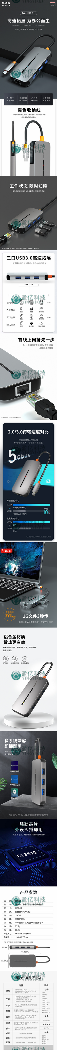 联想(lenovo)异能者Type-C拓展坞扩展坞USB3.0分线器HUB千兆网口RJ45USB-C分线器笔记本电脑通用四合一HC04R