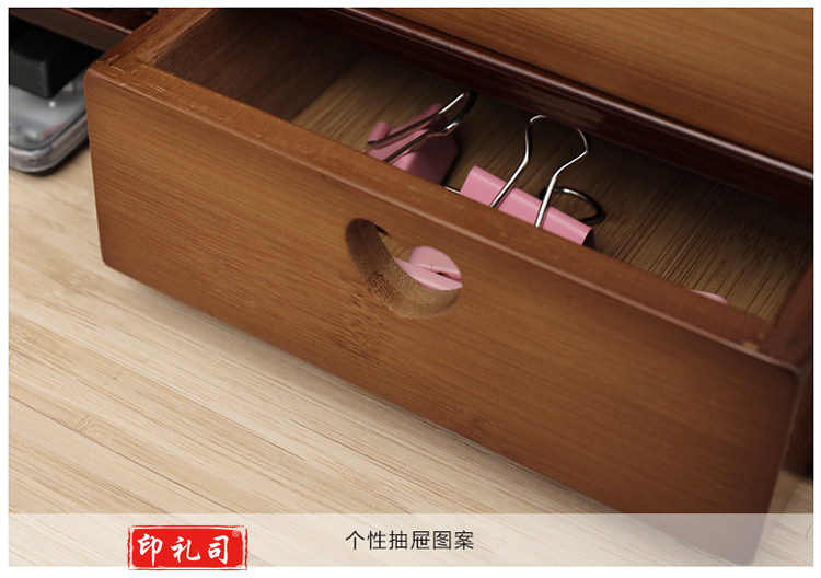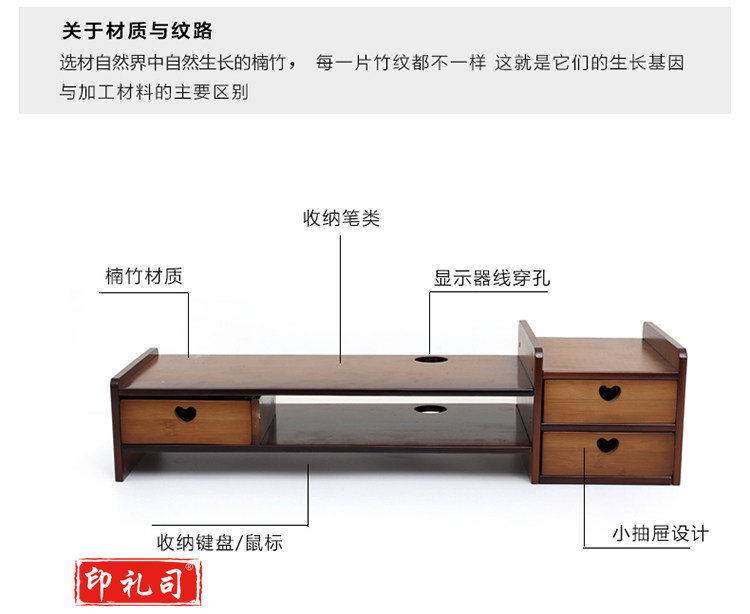 倍方 茶色爱心款三抽屉电脑显示器增高架 电脑支架 置物架 电脑底座 电脑增高架 显示器支架