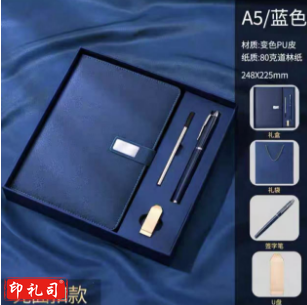 笔记本礼盒套装2023年新款可印logo-A5-午夜蓝(签字笔+笔芯+16G优盘)